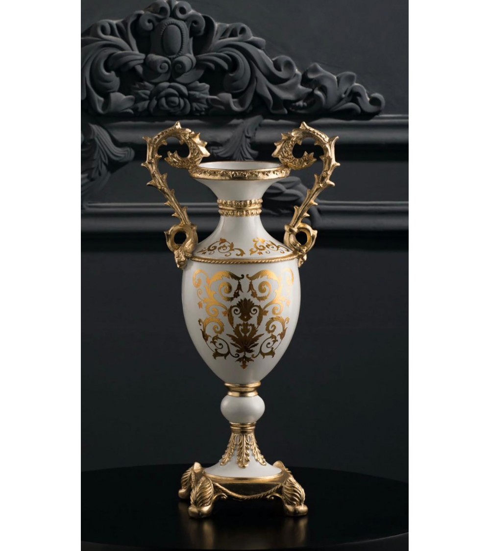 Baroque style amphora ceramic flower cup vase 60 h ivory and gold Vi30