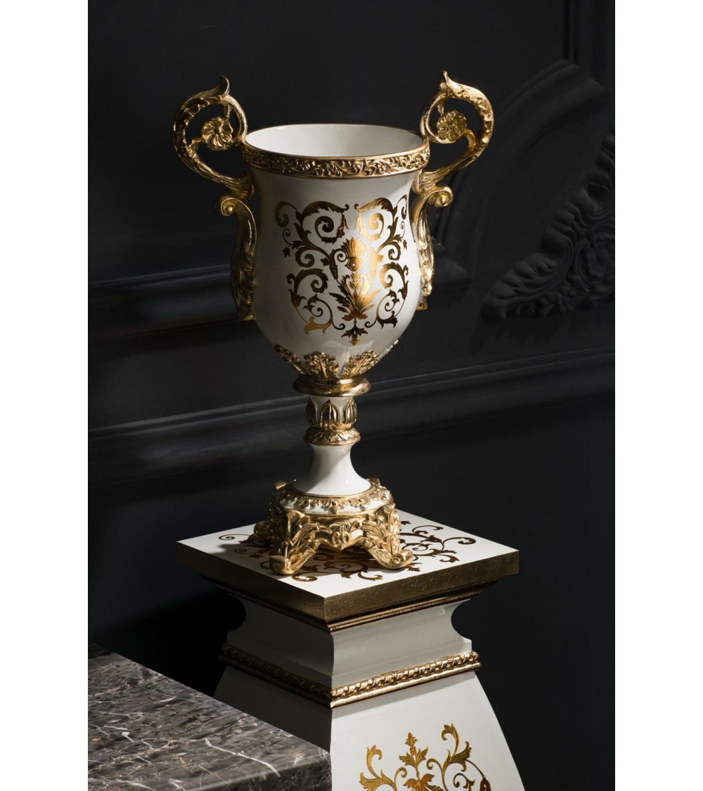 Baroque style amphora ceramic flower cup vase 60 h ivory and gold Vi30