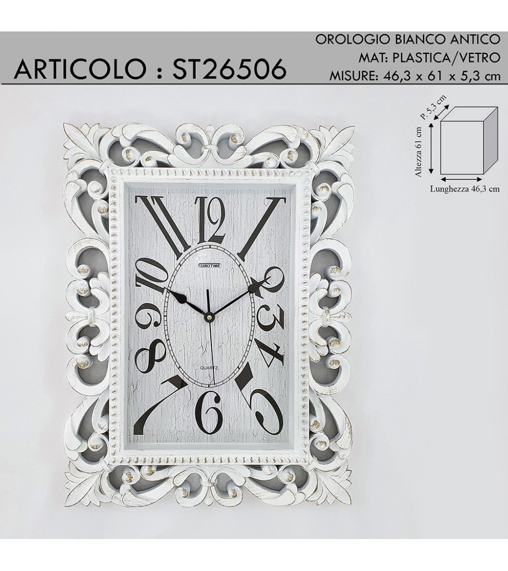 Shabby chic white perforated baroque style frame wall clock ST26506