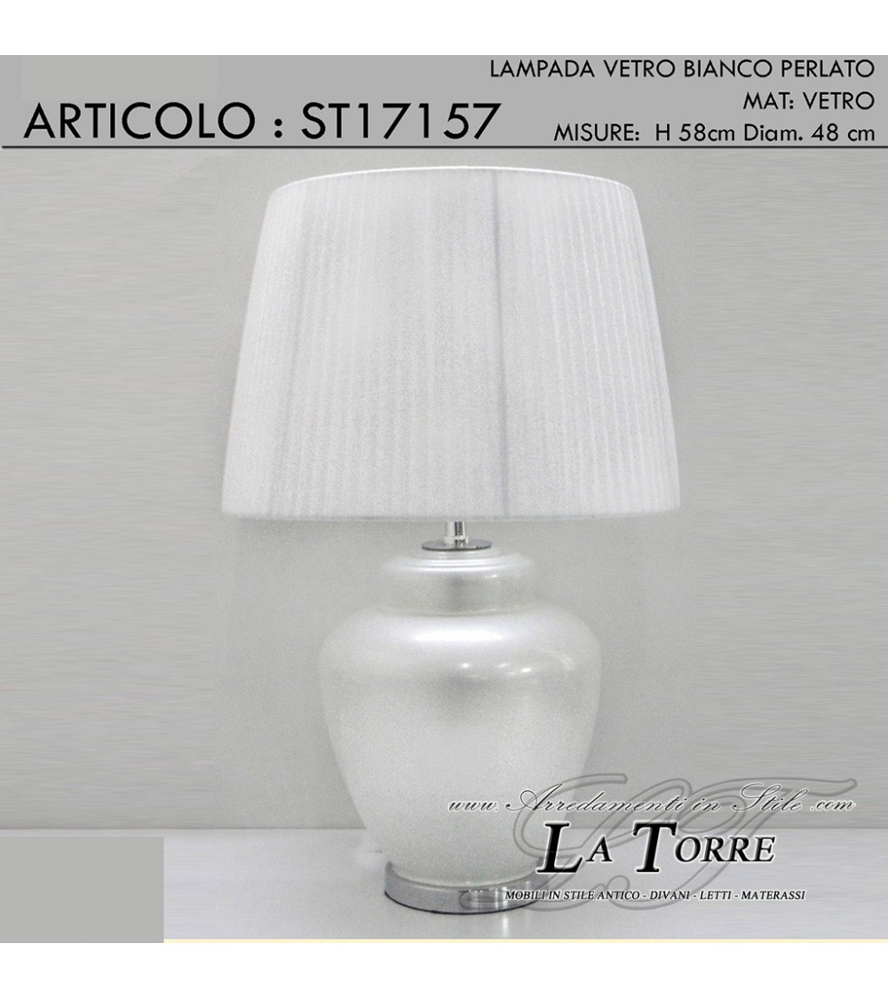Lampada da tavolo vetro bianco perlato ceramica moderno classico lume H65 abatjour ST17157