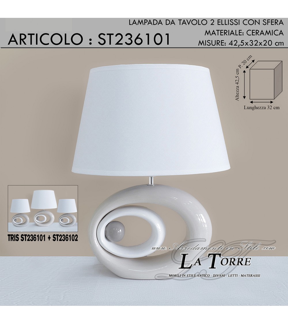 Lampada da tavolo due ellissi con sfera tre colori ceramica moderno lume abatjour ST236101