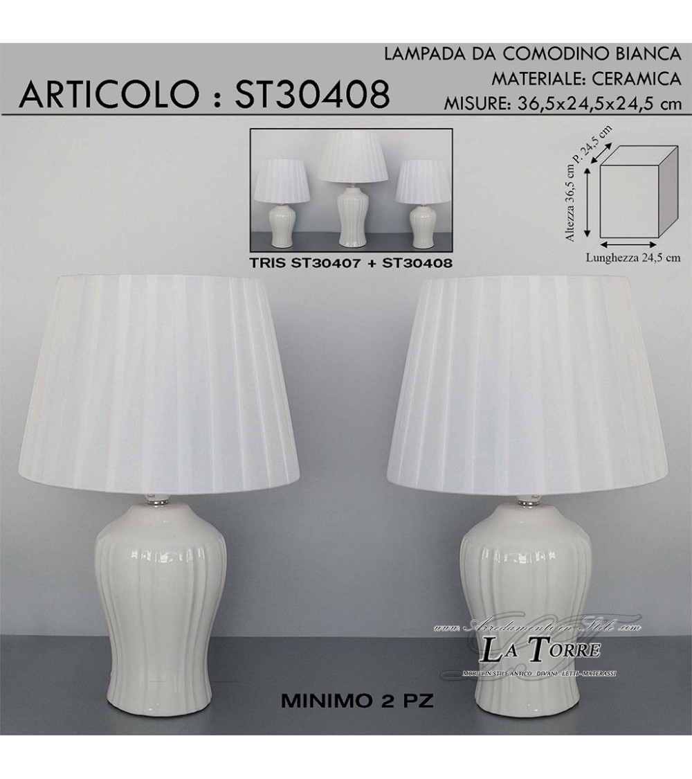 Lampada da tavolo coppia di abatjour H36,5 bianco ceramica moderno classico lume ST30408