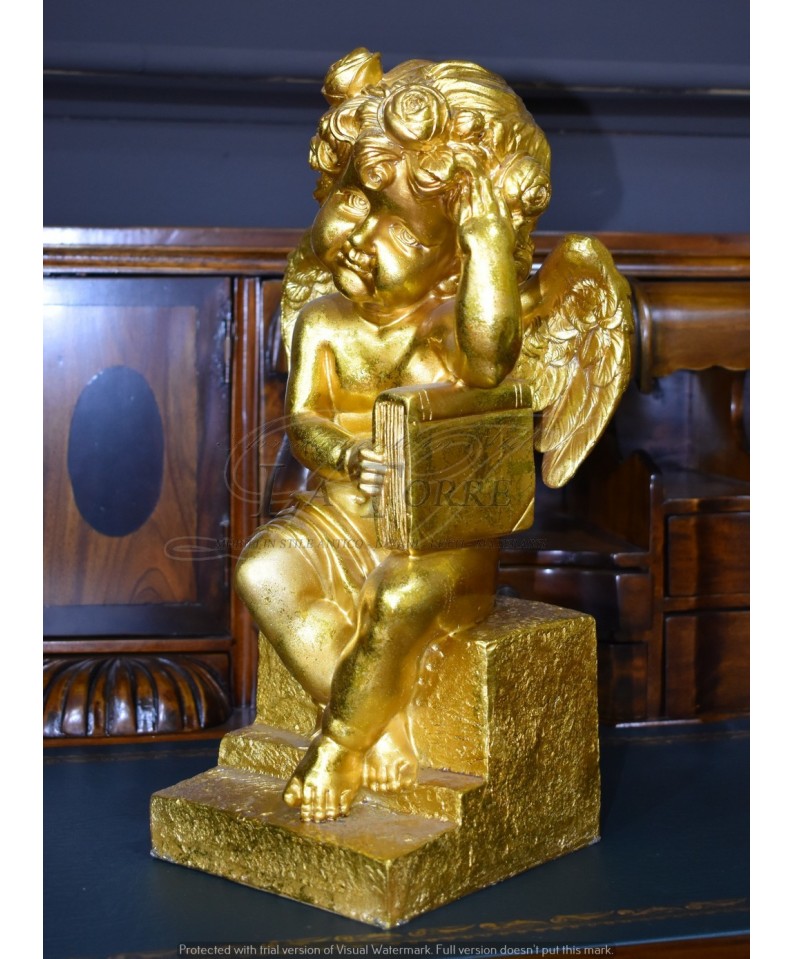 Statua Angelo antico barocco foglia oro puttino soprammobile decorazione casa R18