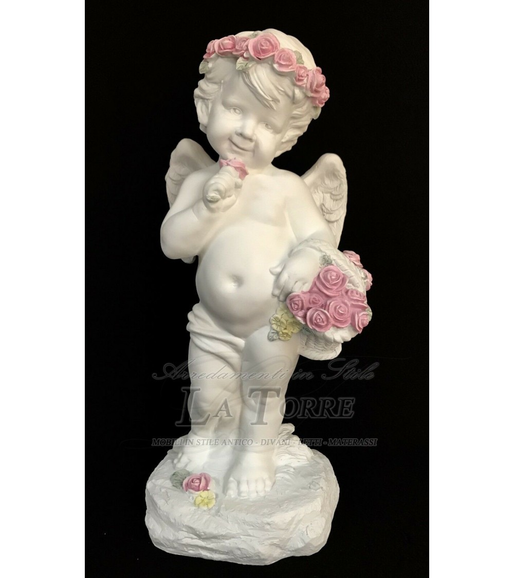 Statua Angelo antico barocco bianco puttino soprammobile decorazione casa R20