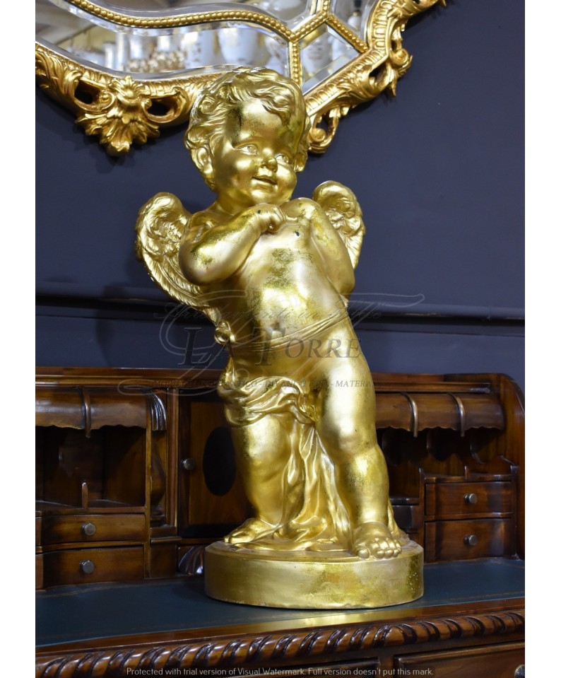 Statua Angelo antico barocco foglia oro puttino soprammobile decorazione casa R32