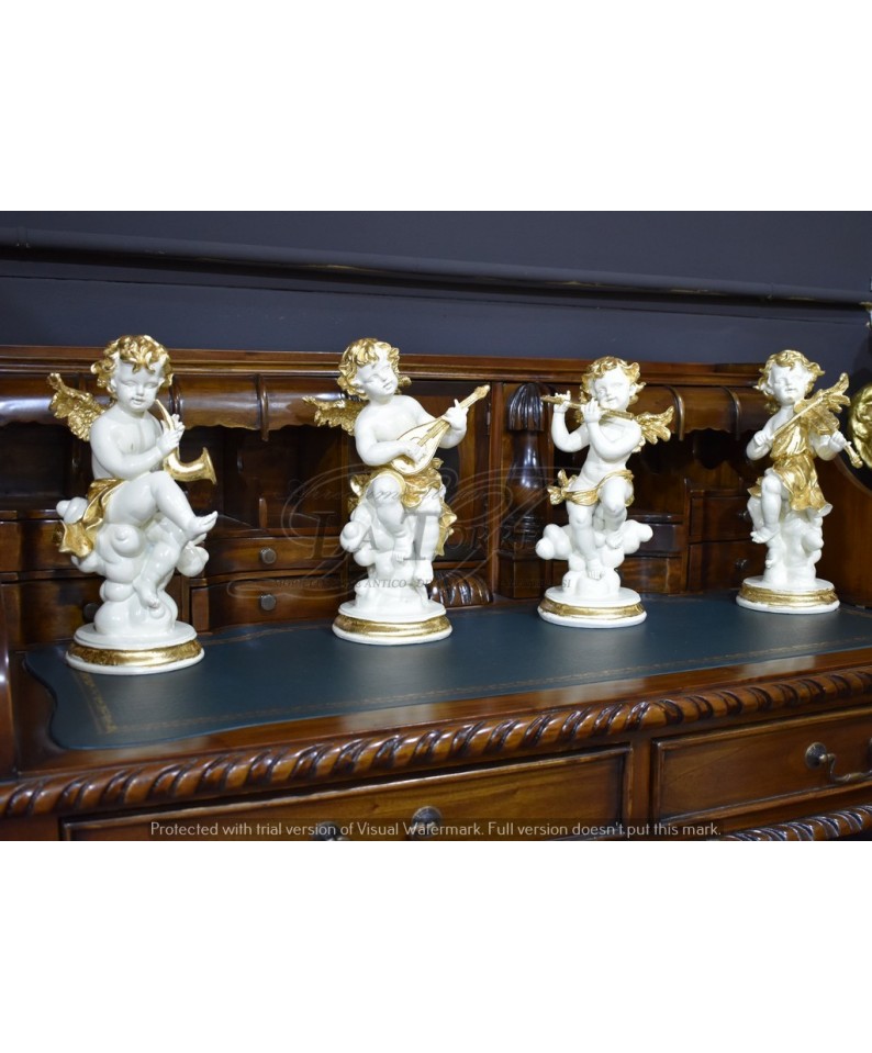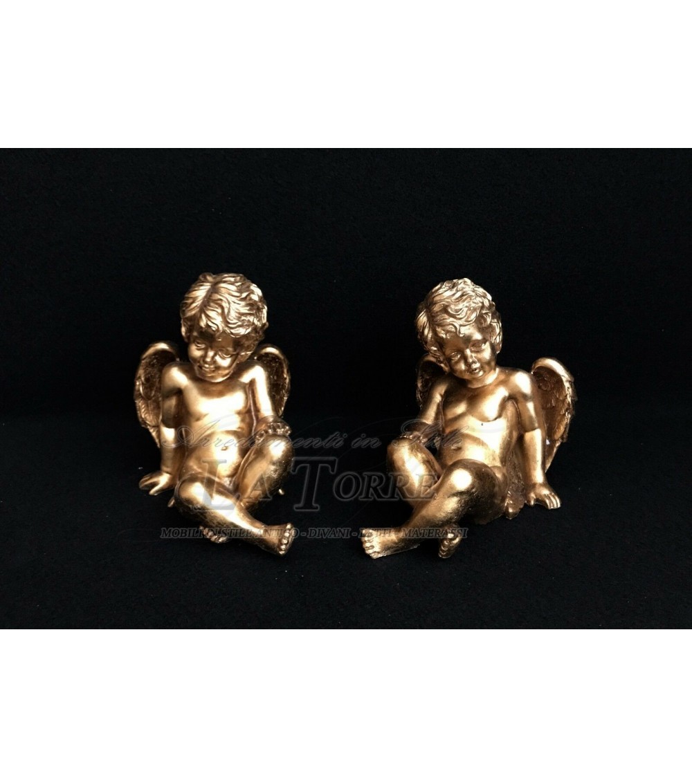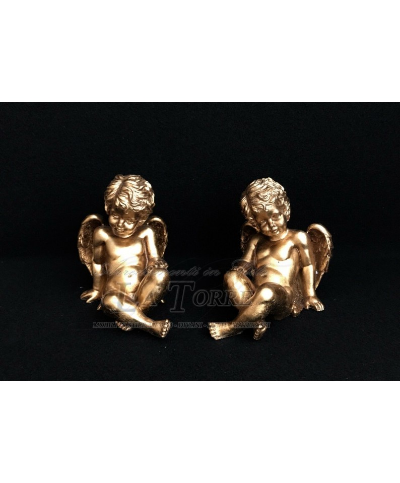 Statua set 2 pz Angelo seduto oro barocco puttino decorazione casa R38