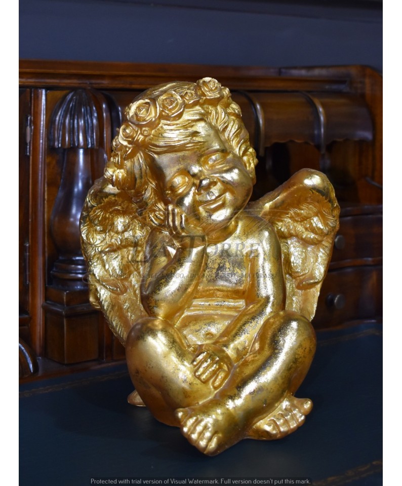 Statua Angelo antico barocco fogli oro puttino soprammobile decorazione casa R11