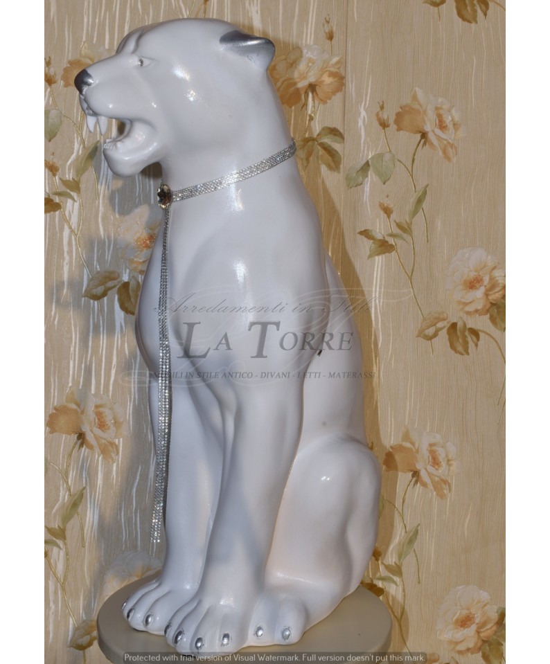 Animali in ceramica statua scultura pantera Leopardo Puma bianco foglia argento swarovski h70cm PR31