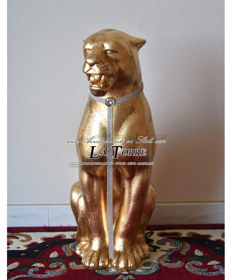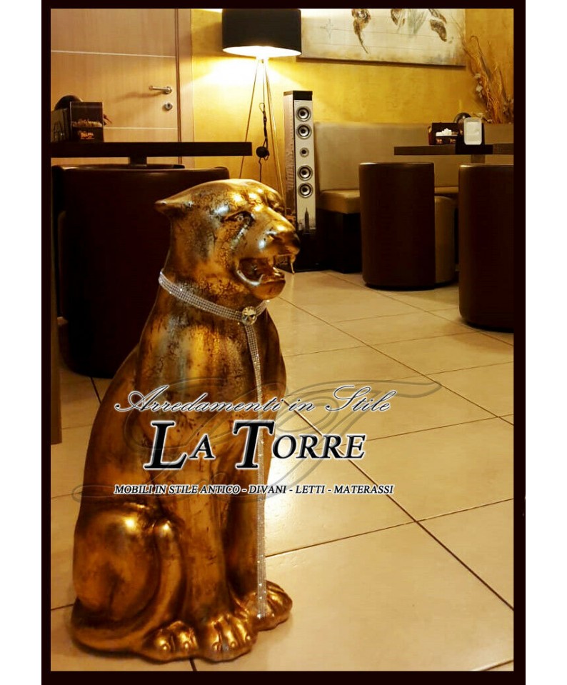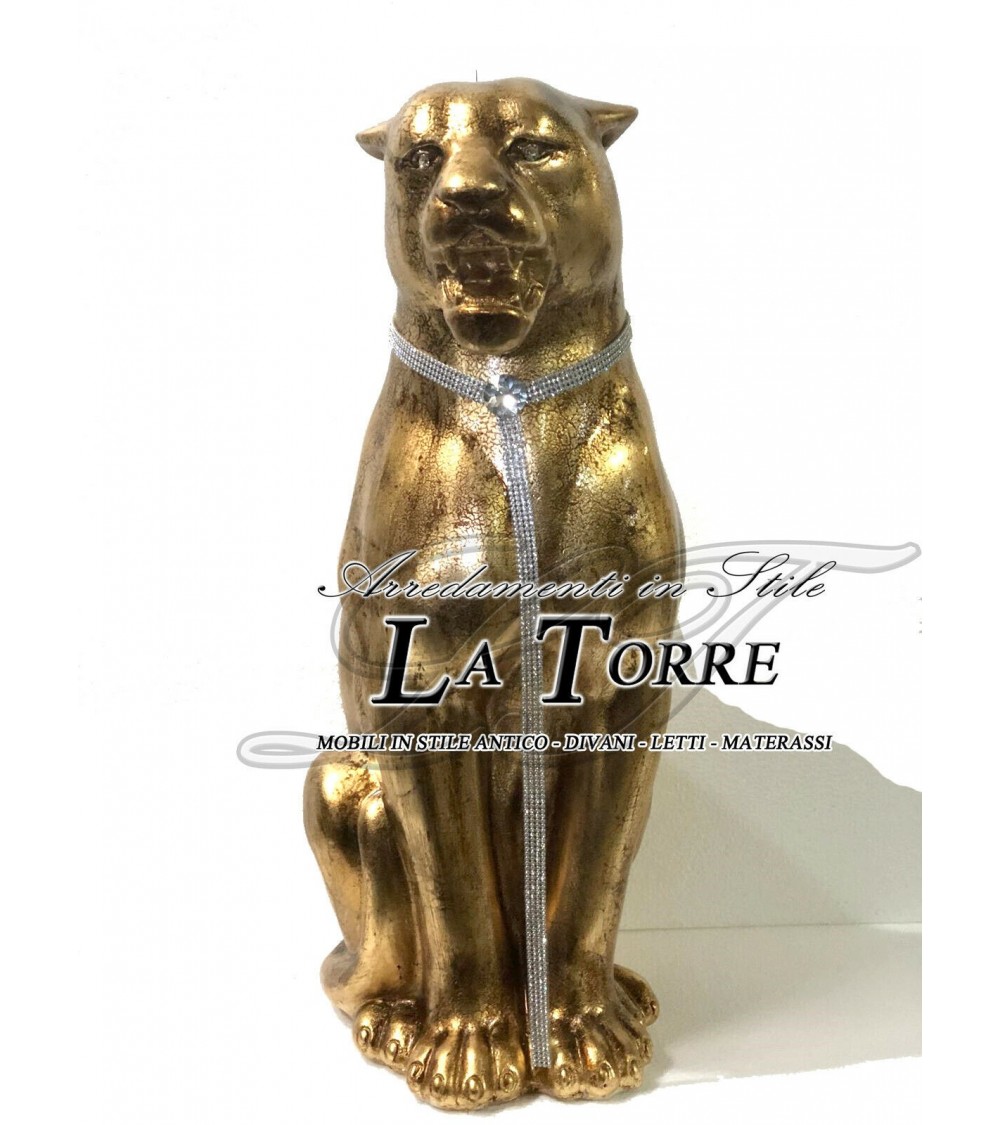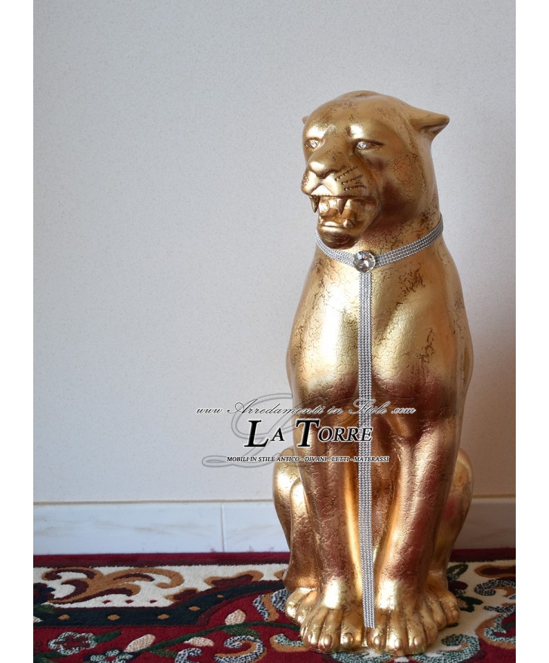 Animali in ceramica statua scultura pantera puma oro cracklé leopardo swarovski h70cm PR31
