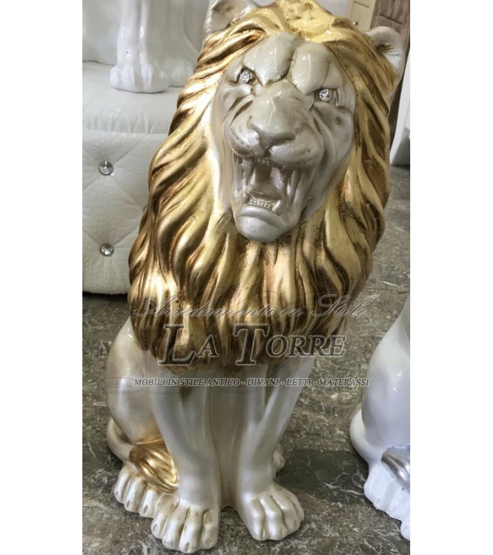 Animali in ceramica statua scultura Leone bocca aperta avorio oro swarovski h70cm PR13