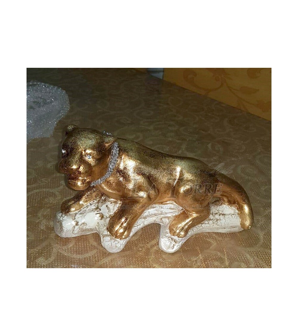 Statua complementi arredo scultura pantera feroce su ramo oro animal ceramica H20 PR26