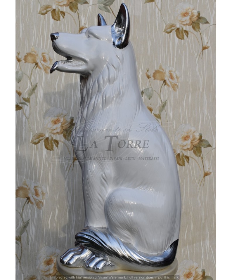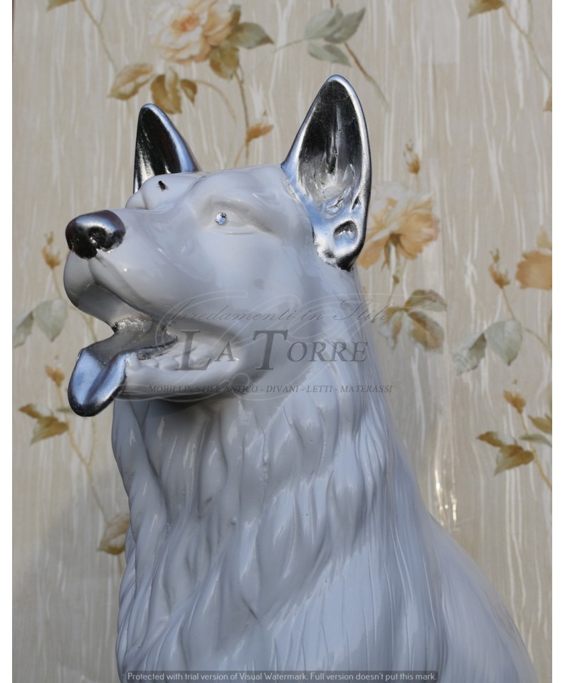 Statua ceramica scultura Cane Pastore Tedesco bianco argento dog swarovski H70cm PR25