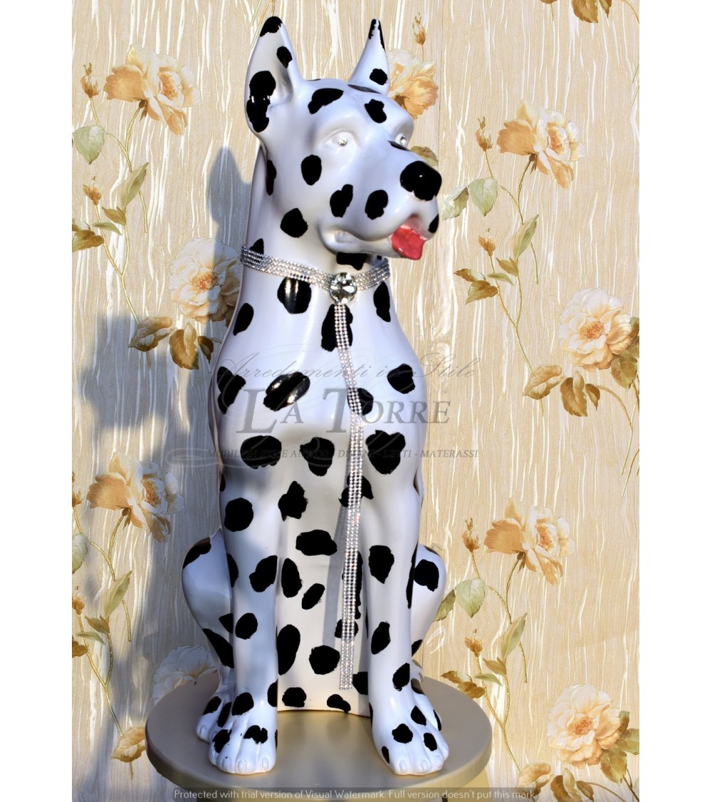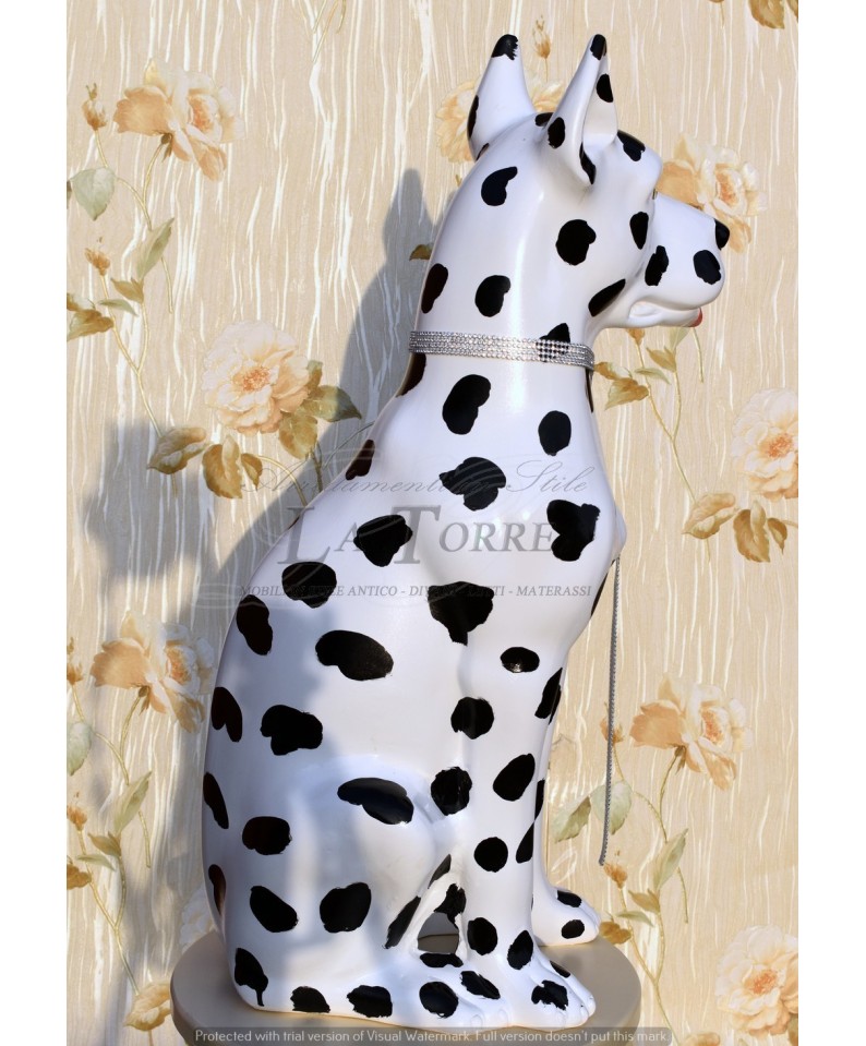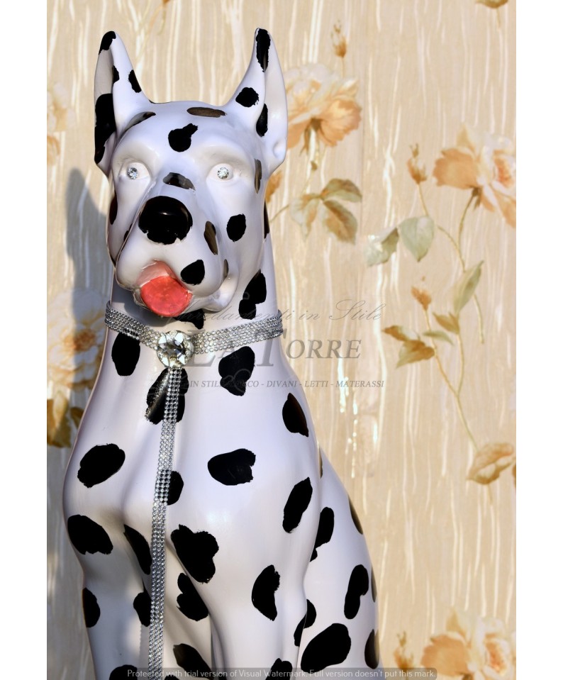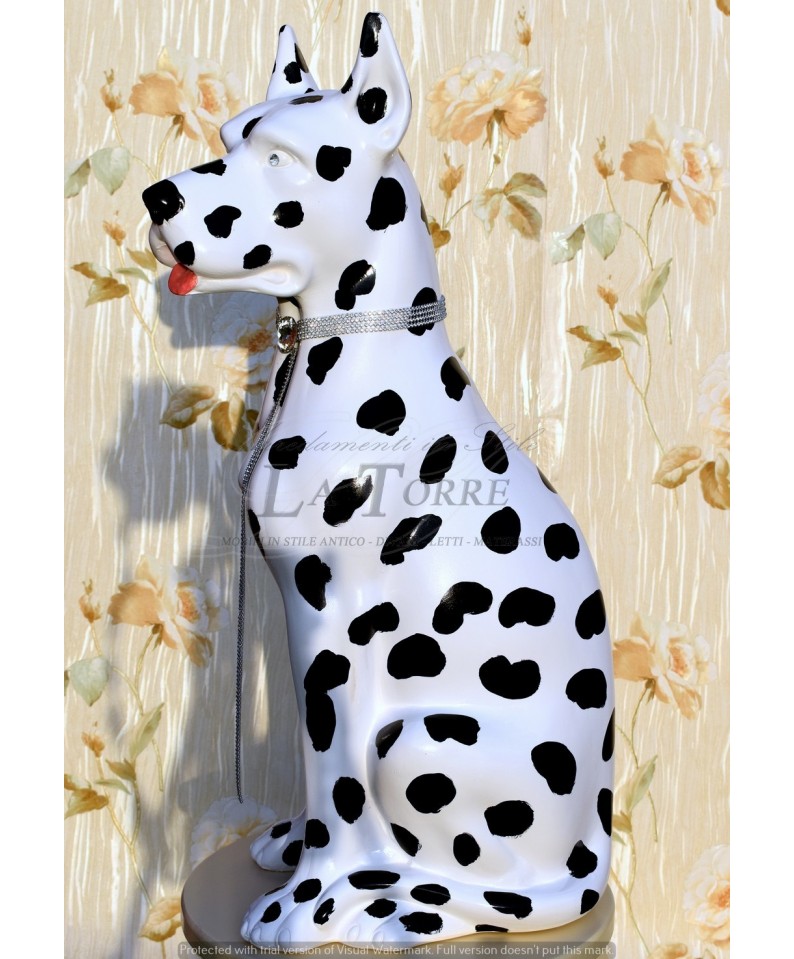 Statua ceramica scultura cane dalmata bianco nero dog swarovski H70cm PR24
