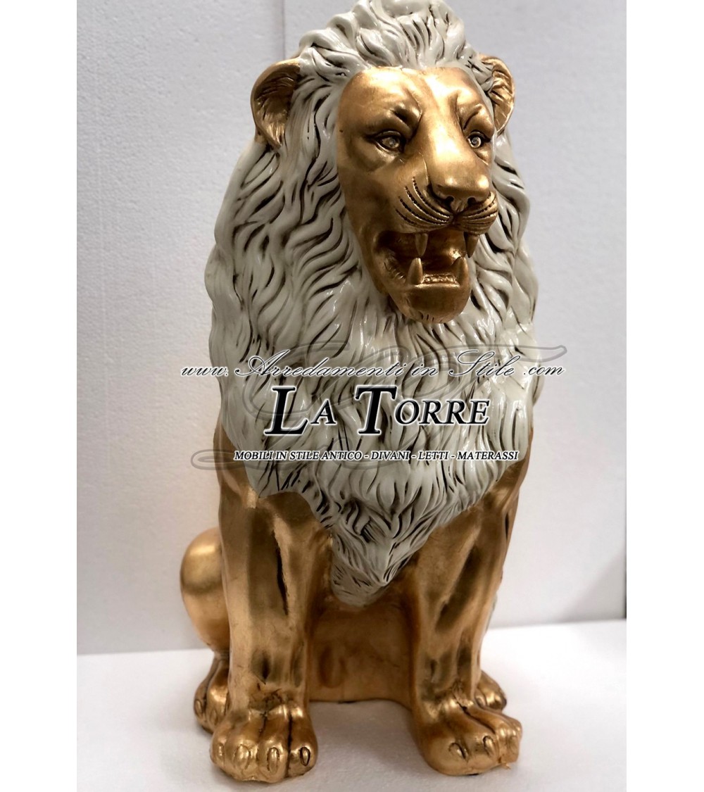 Animali in ceramica statua scultura Leone bocca aperta foglia oro criniera avorio swarovski H90cm PR14