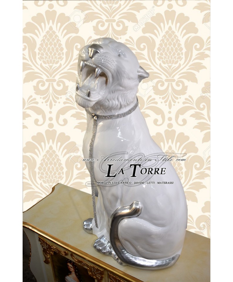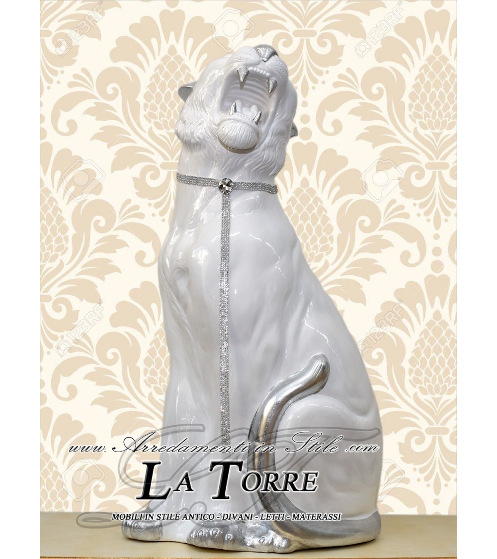 Animali in ceramica statua scultura Tigre bocca aperta bianca argento swarovski H90cm PR10