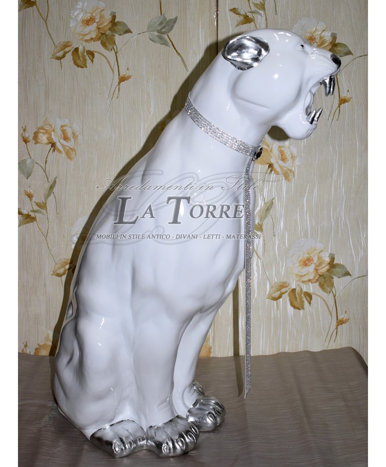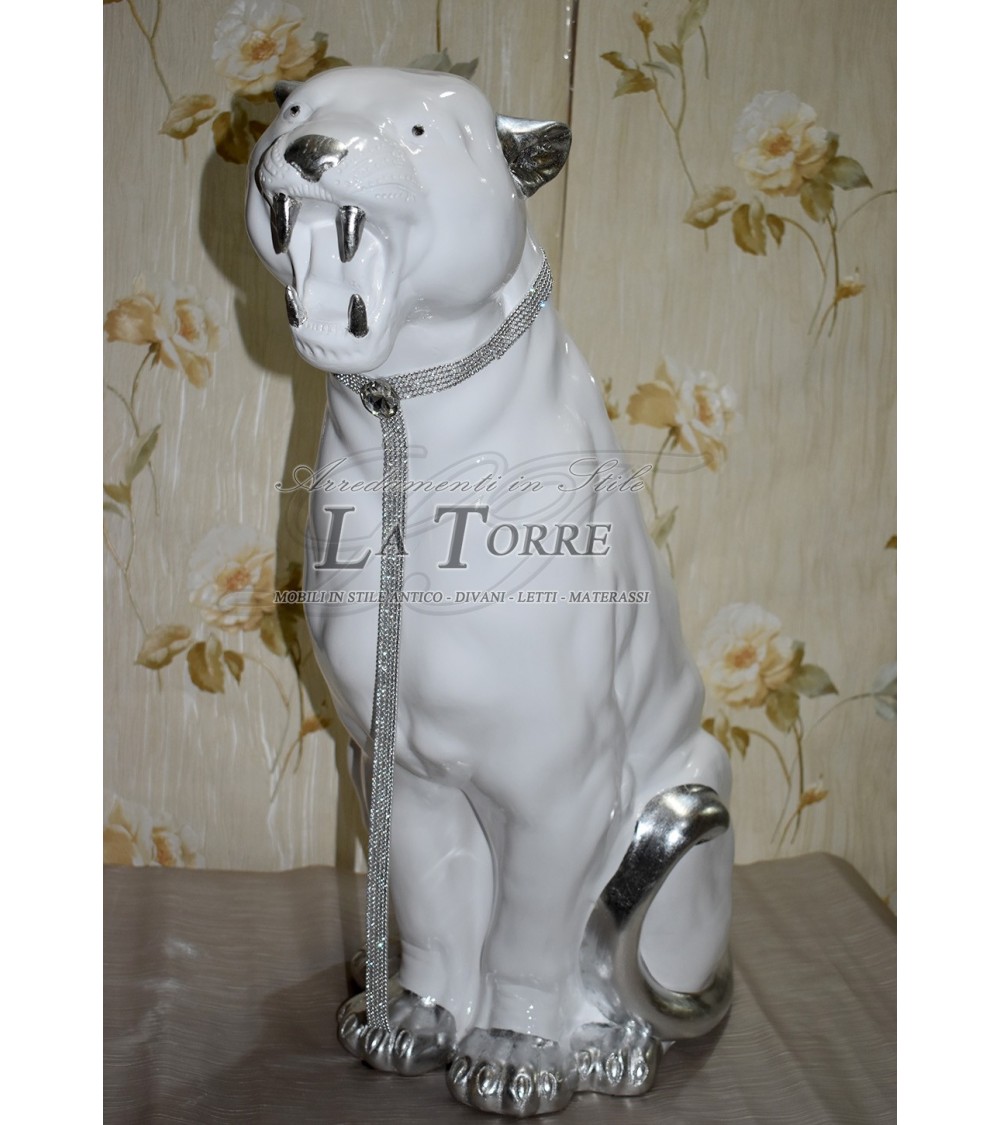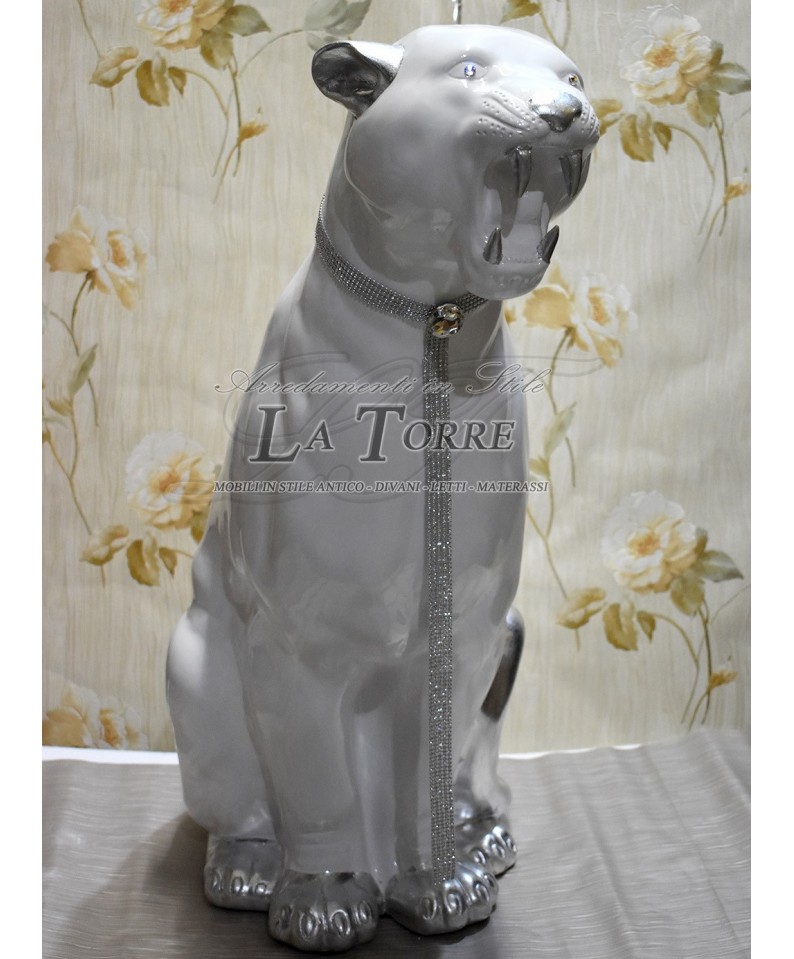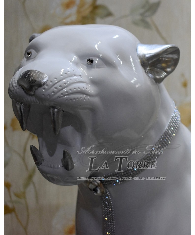 Animali in ceramica statua scultura pantera Leopardo giaguaro puma bianco argento swarovski H80cm PR22