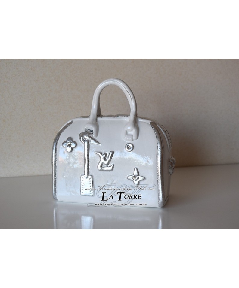 Borsa ceramica soprammobile bauletto Louis Vuitton piccolo bianco argento con swarovski PR15