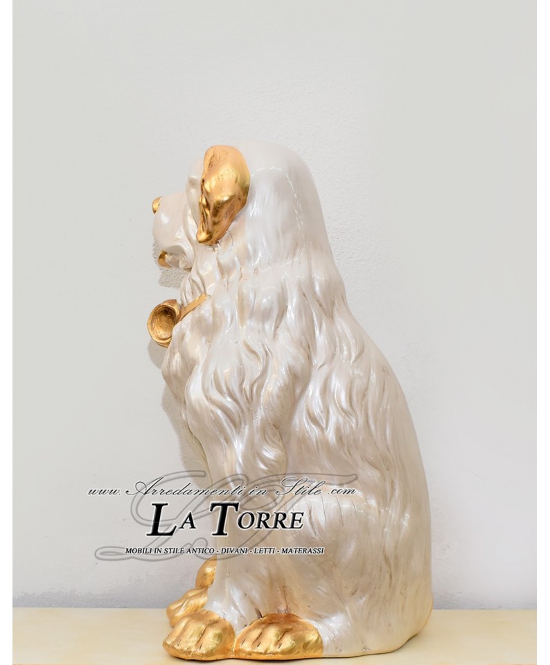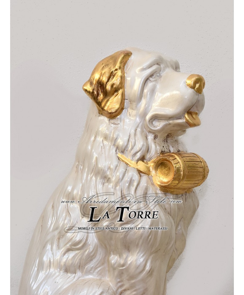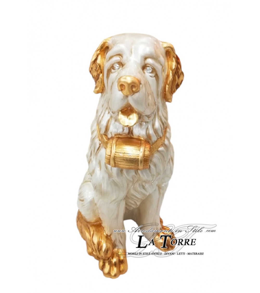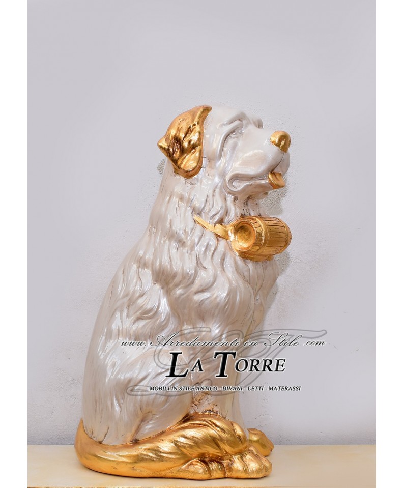 Animali in ceramica statua scultura cane San Bernardo bianco perlato e oro swarovski H70cm PR12