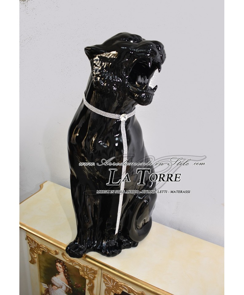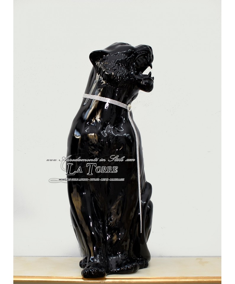 Animali in ceramica Statua scultura Tigre bocca aperta nera swarovski H90cm PR10