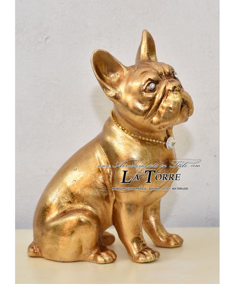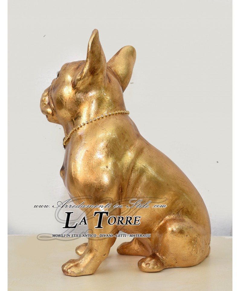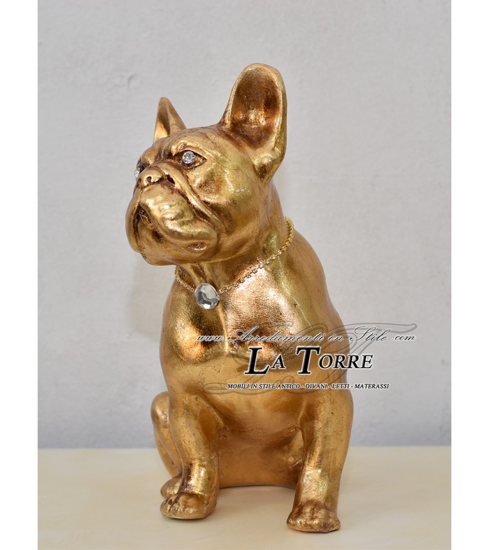 Statua scultura cucciolo cane bulldog francese dog oro swarovski H30 PR09