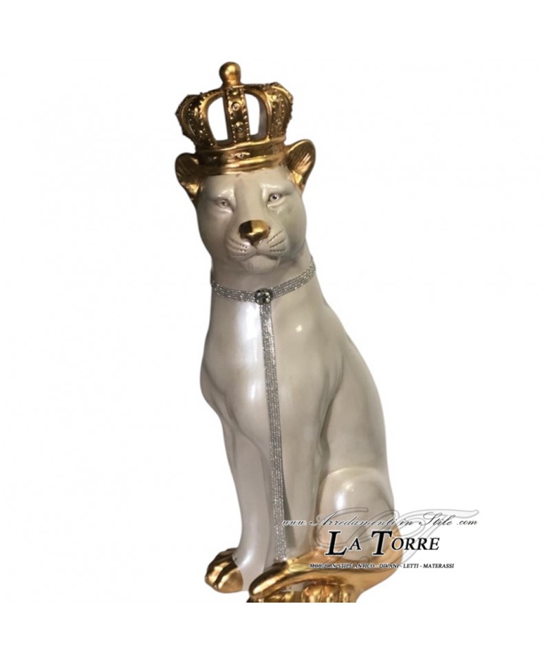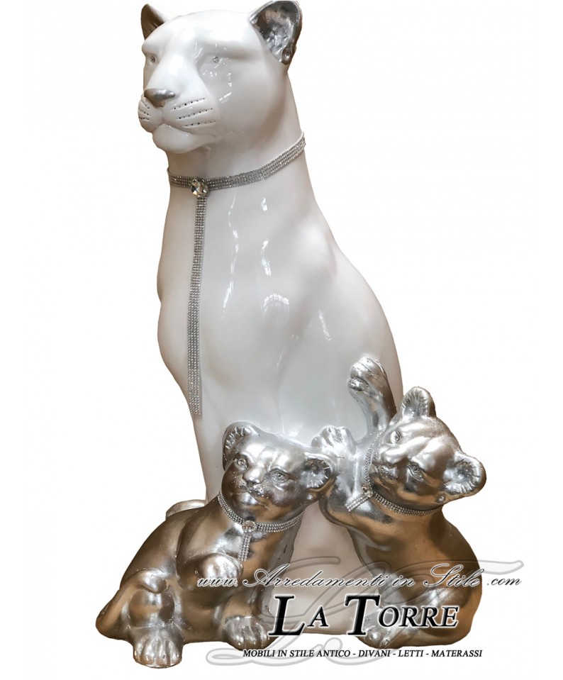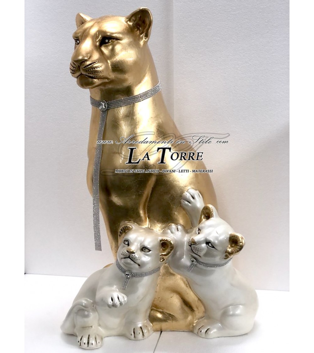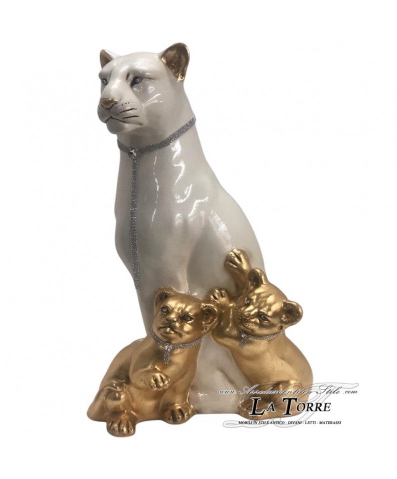 Animali in ceramica statua scultura leonessa oro e cuccioli bianco perlato swarovski h100 cm PR01