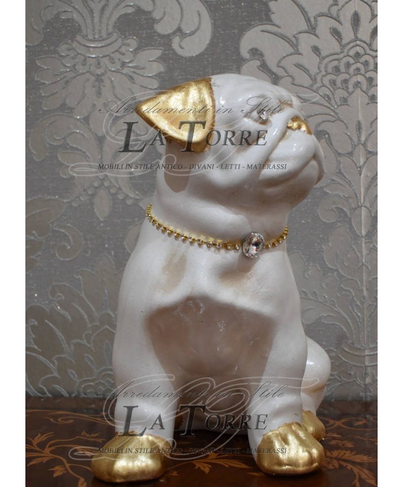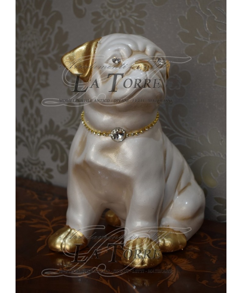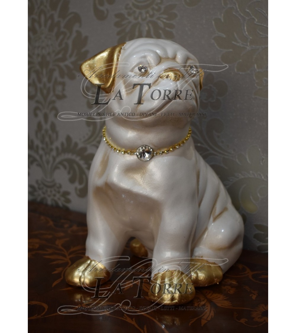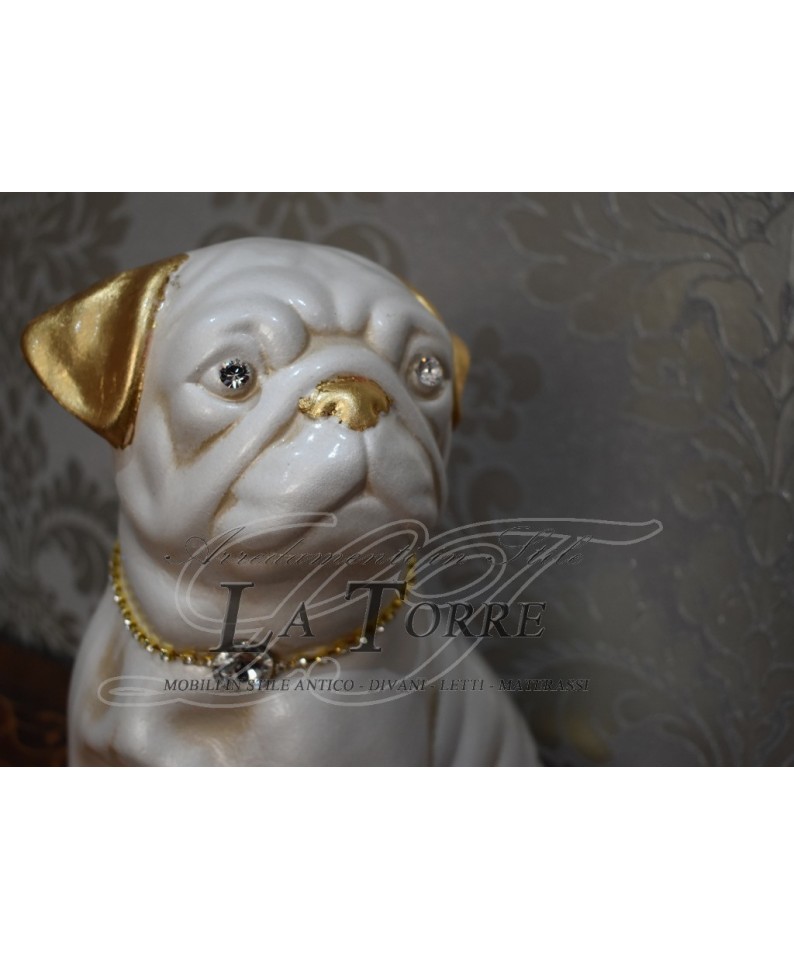 Animali in ceramica statua scultura cucciolo cane bulldog inglese bianco perlato oro swarovski animali ceramica PR18