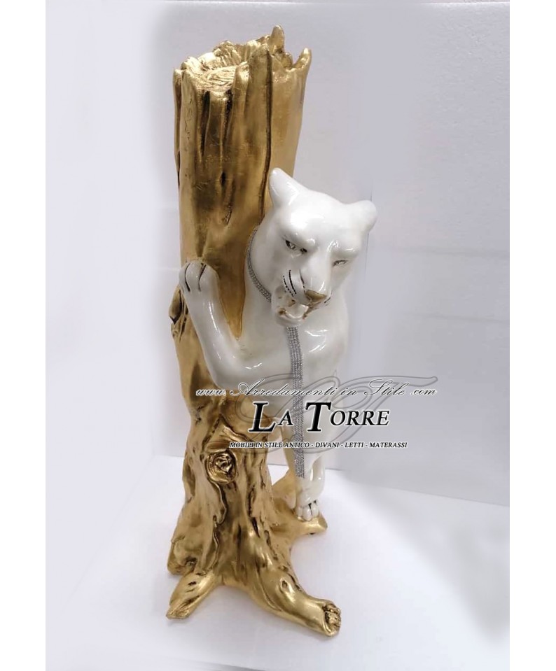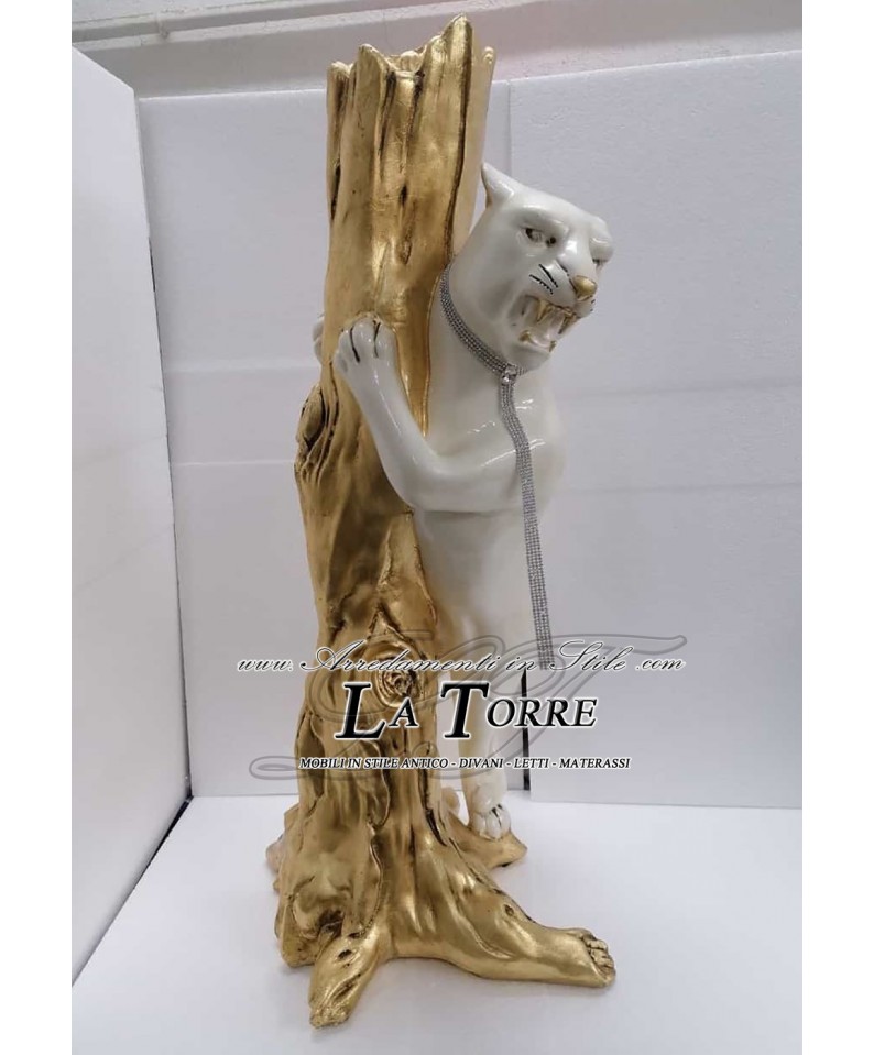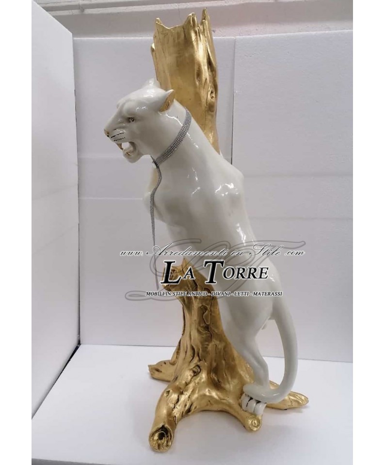 Statua complementi arredo scultura pantera feroce su ramo oro animal ceramica H100 PR52