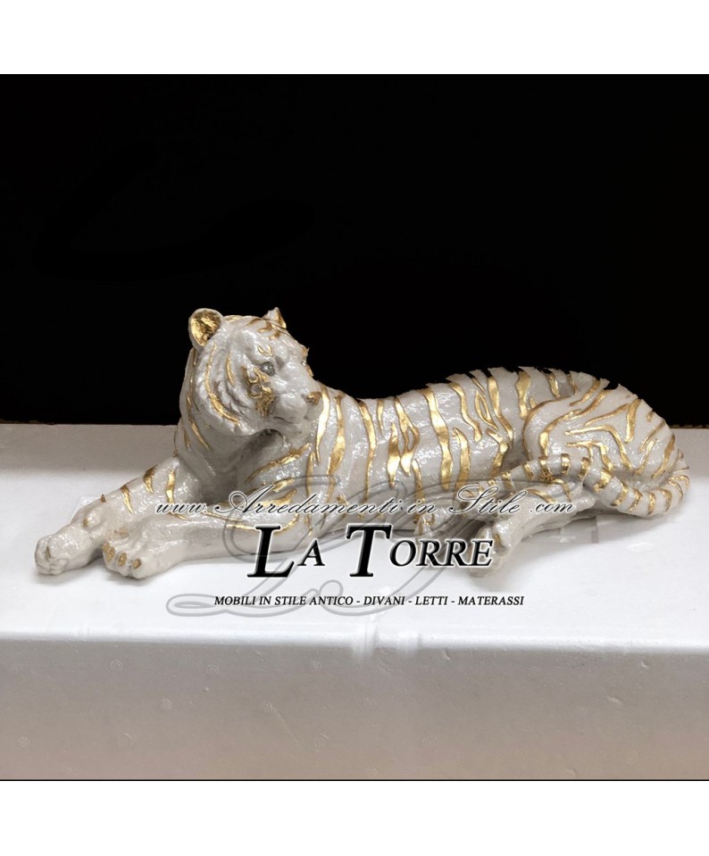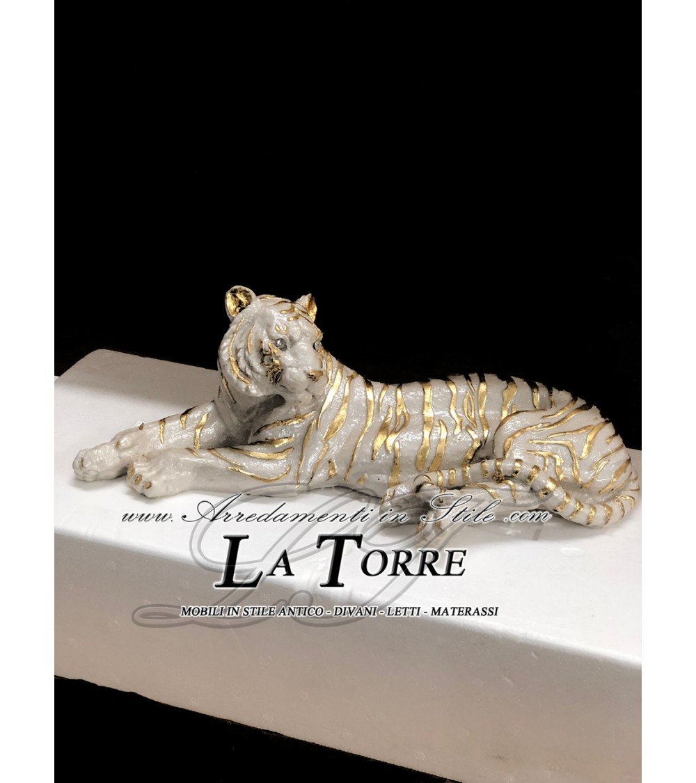 Animali in ceramica statua scultura tigre della Malesia sdraiata avorio e oro swarovski PR04
