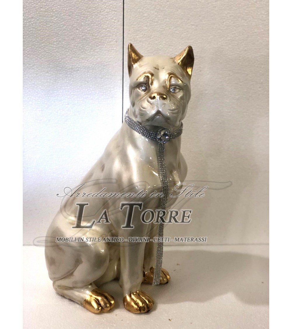 Statua scultura perlato boxer oro cane swarovski animali ceramica h50cm PR54