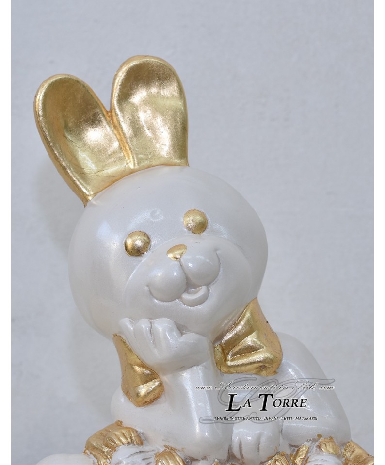 Statua scultura cucciolo coniglietto bianco perlato oro swarovski animali ceramica PR34