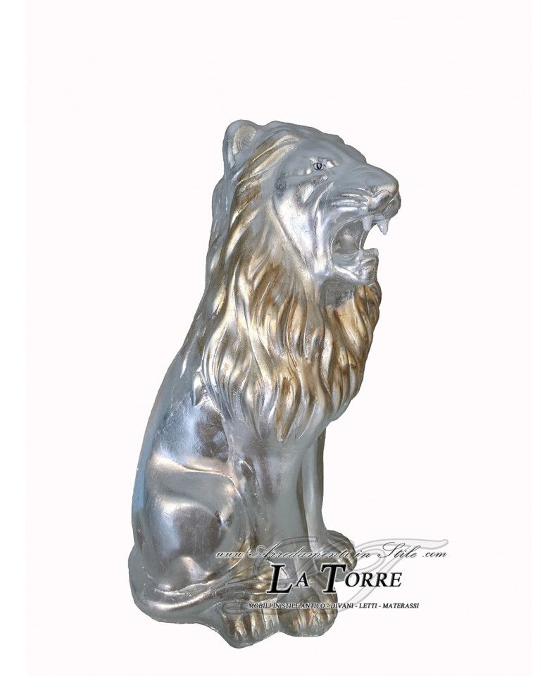 Animali in ceramica statua scultura Leone bocca aperta Foglia argento con brunitura Swarovski H70Cm PR13