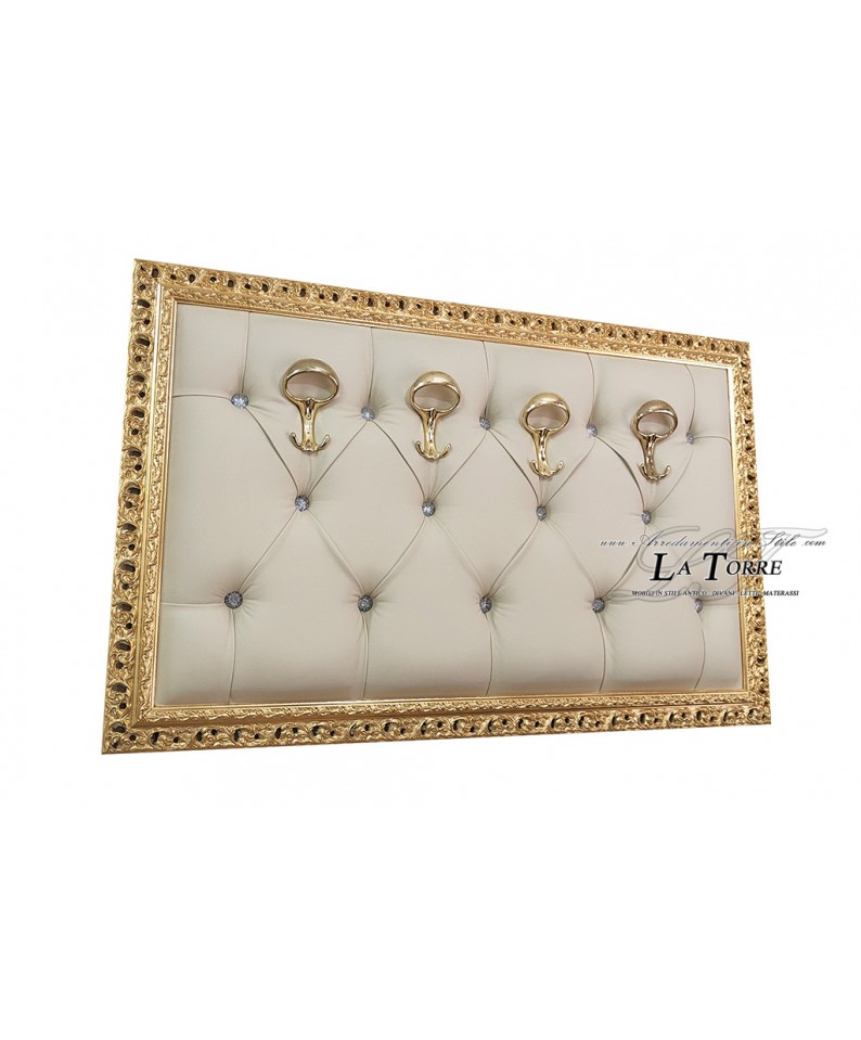 Appendiabiti da muro attaccapanni barocco oro ecopelle champagne cornice traforata 313