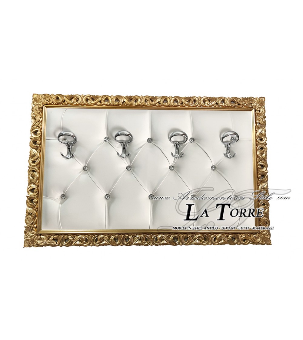 Appendiabiti con cornice traforata da muro attaccapanni barocco oro ecopelle bianca 1135