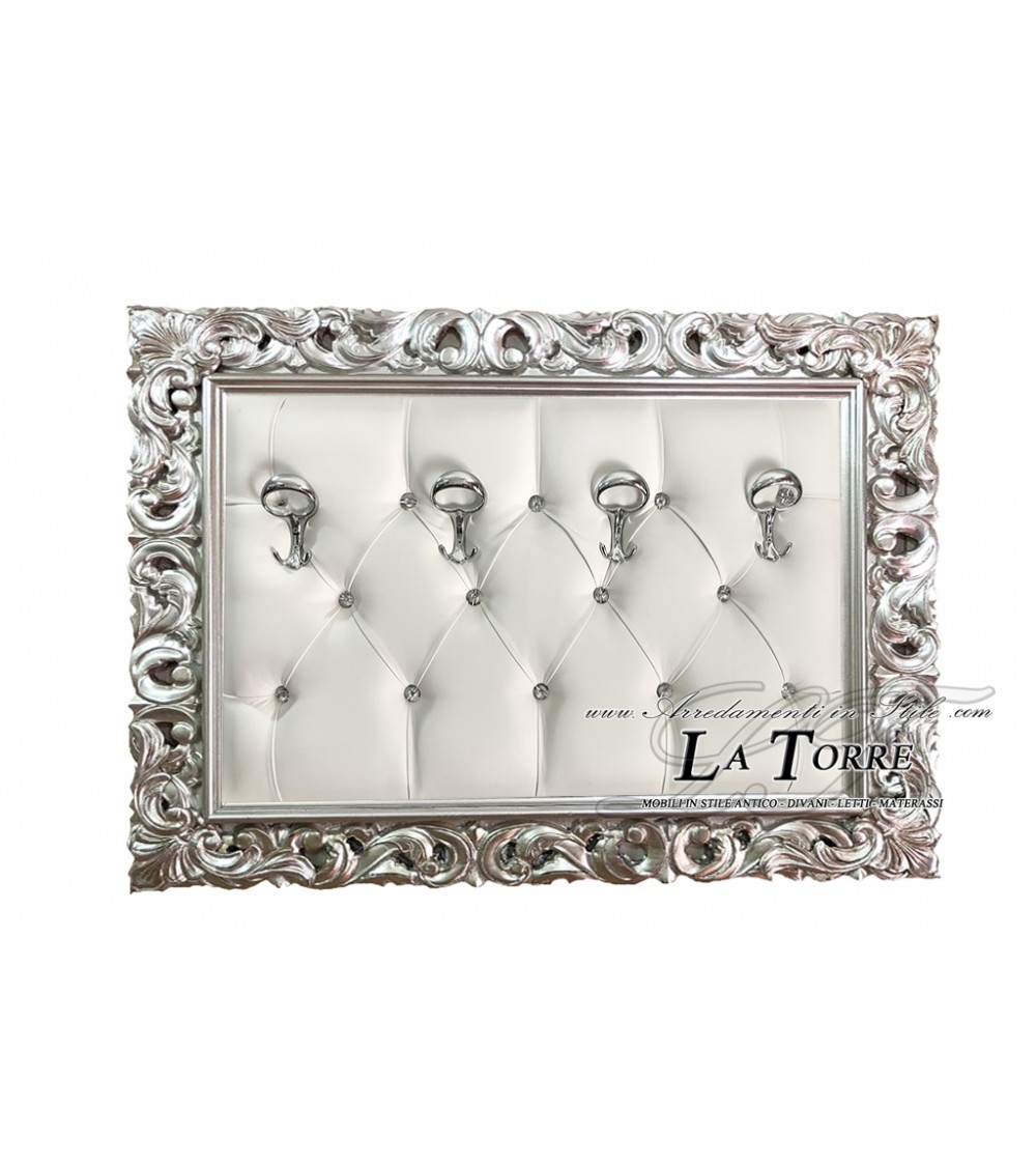 Appendiabiti da muro attaccapanni barocco Argento ecopelle bianca Swarovski 1135