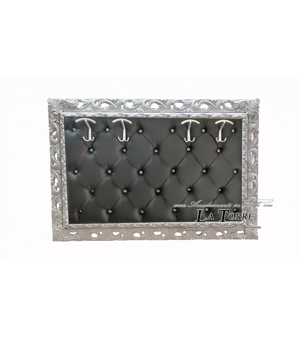 Appendiabiti da muro attaccapanni barocco bianco ecopelle nera Swarovski GGB