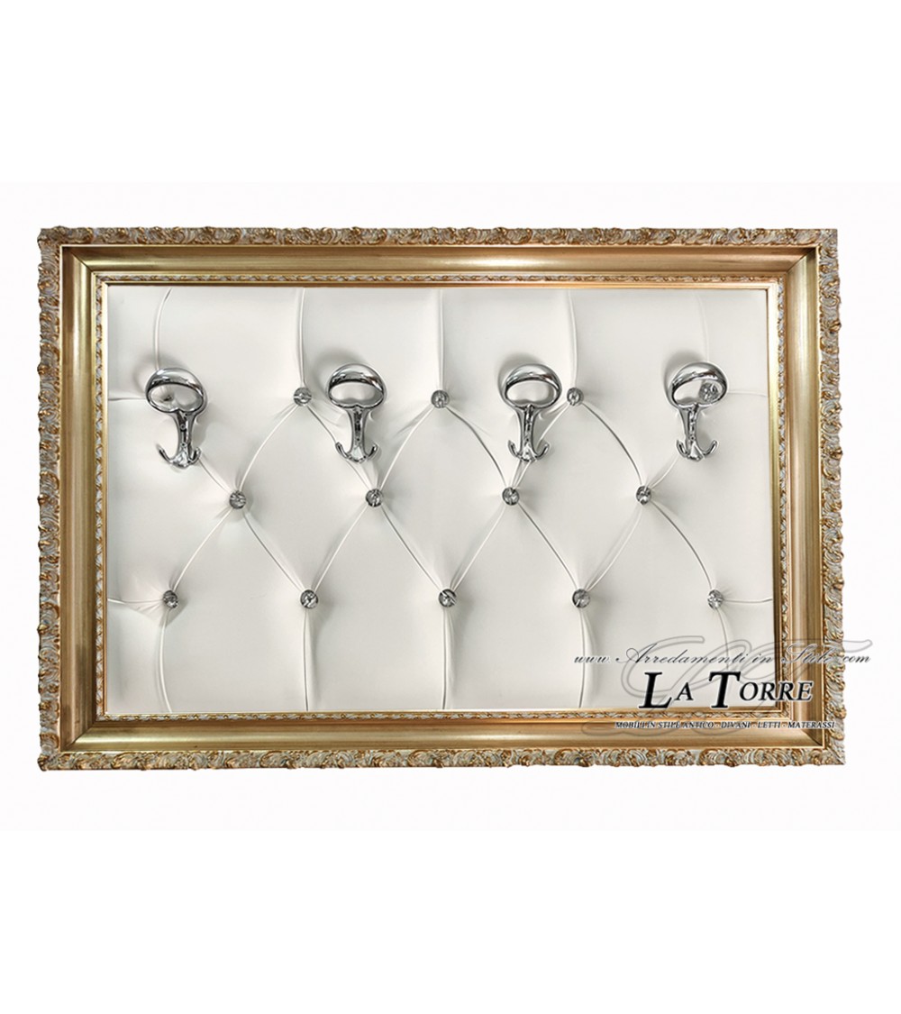 Appendiabiti con cornice da muro attaccapanni barocco oro con particolari avorio ecopelle bianca 1045
