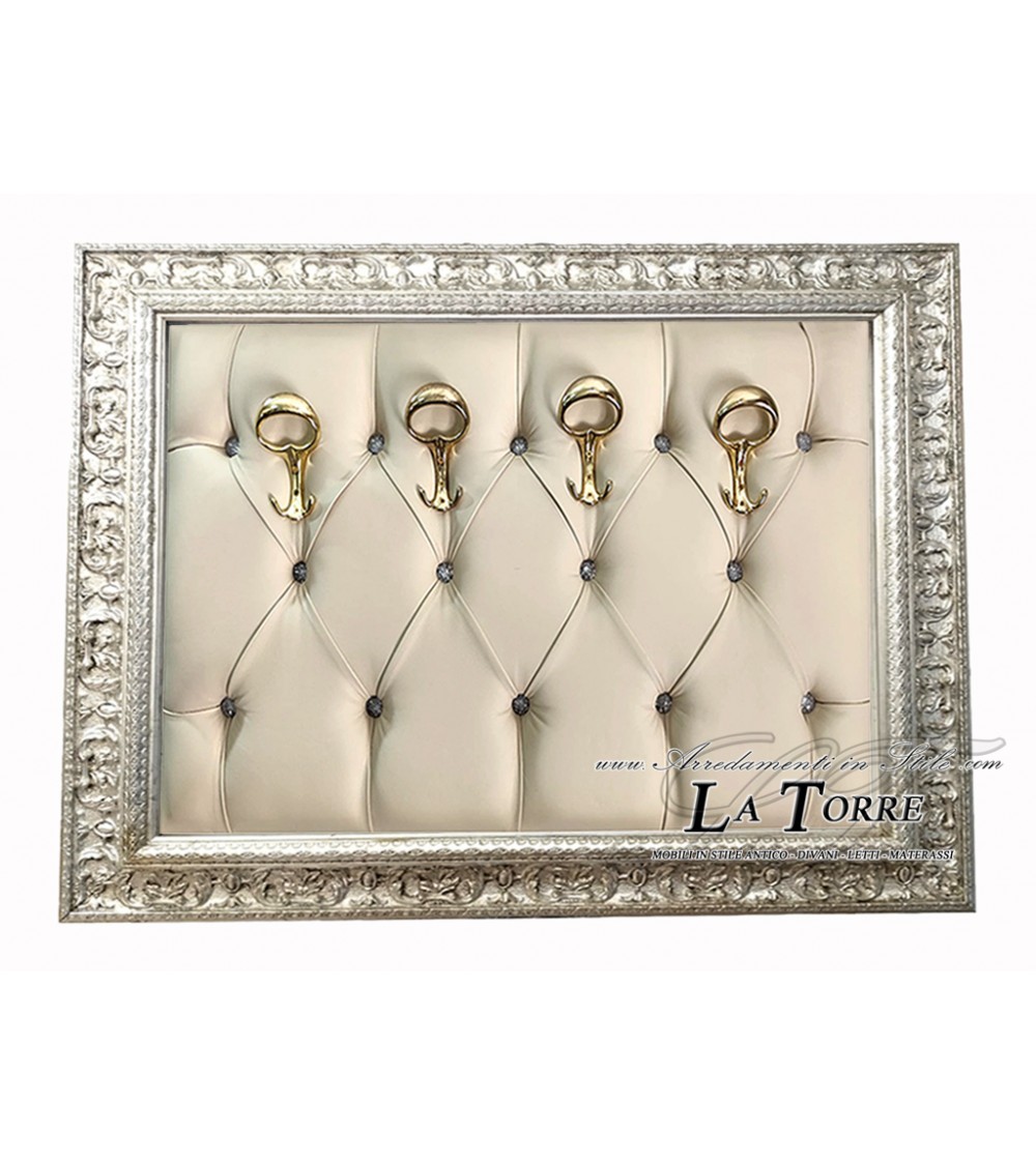 Appendiabiti con cornice da muro attaccapanni barocco classico argento anticato ecopelle avorio D621