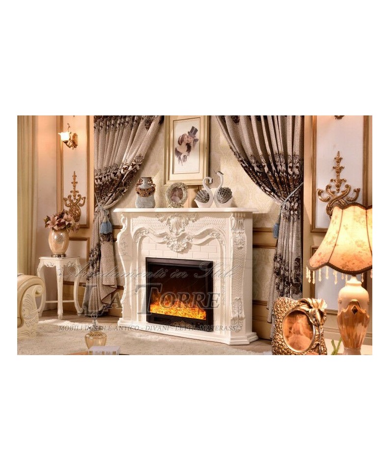 Camino elettrico 150 cm classico stufa legno massello Barocco qualsiasi colore 330B