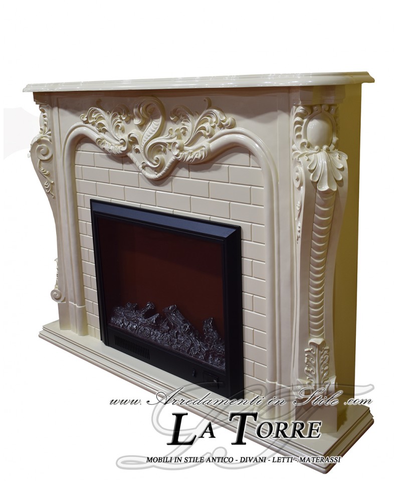 Camino elettrico classico stufa legno massello Barocco Inglese qualsiasi colore 325B