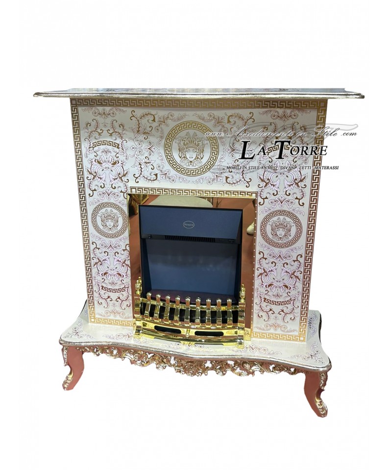 Camino elettrico classico Barocco Dea Medusa legno avorio e oro MED15