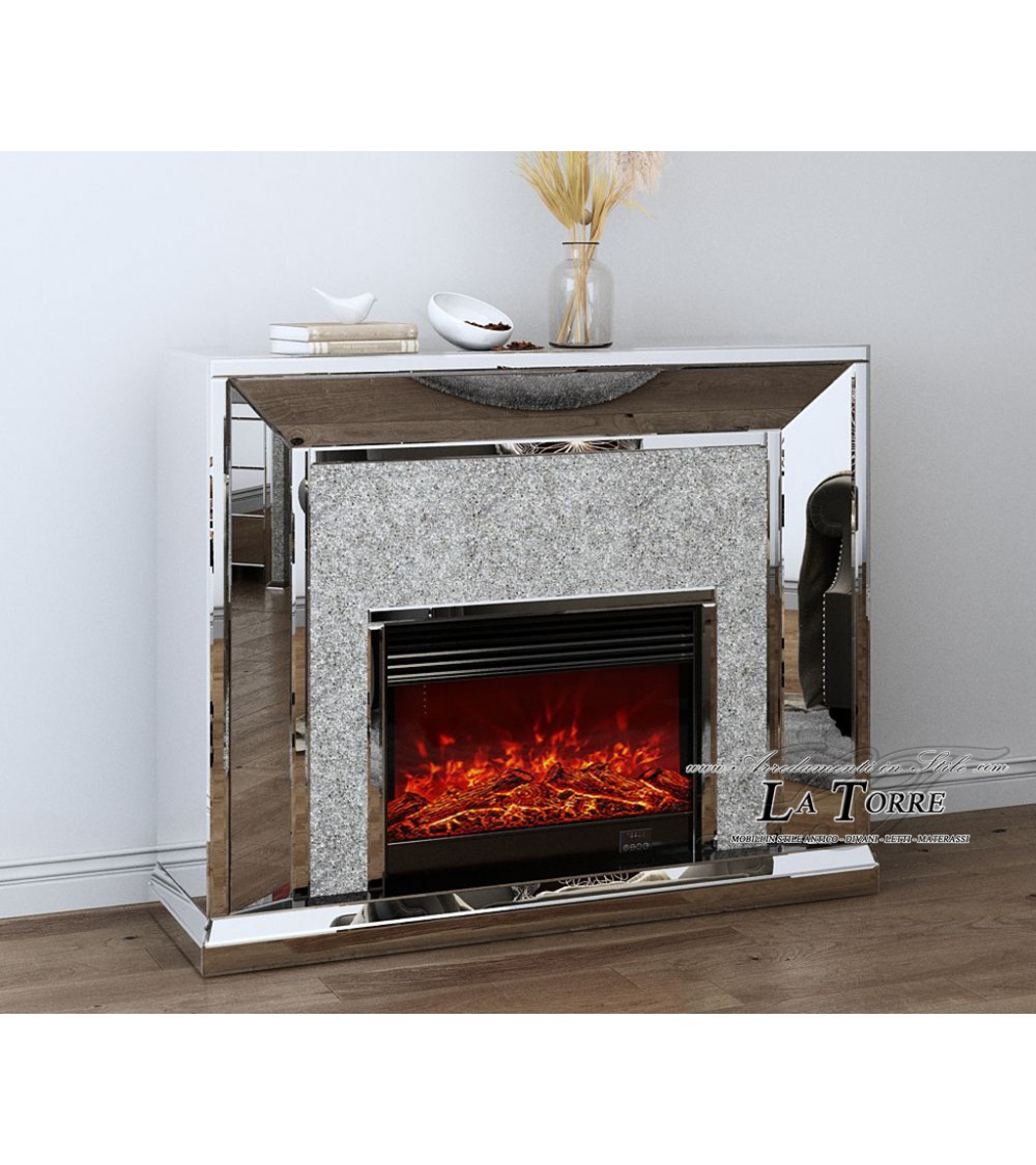 Camino Elettrico Specchiato con Brillanti Swarovski – Riscaldamento Reale e Design Moderno SP26