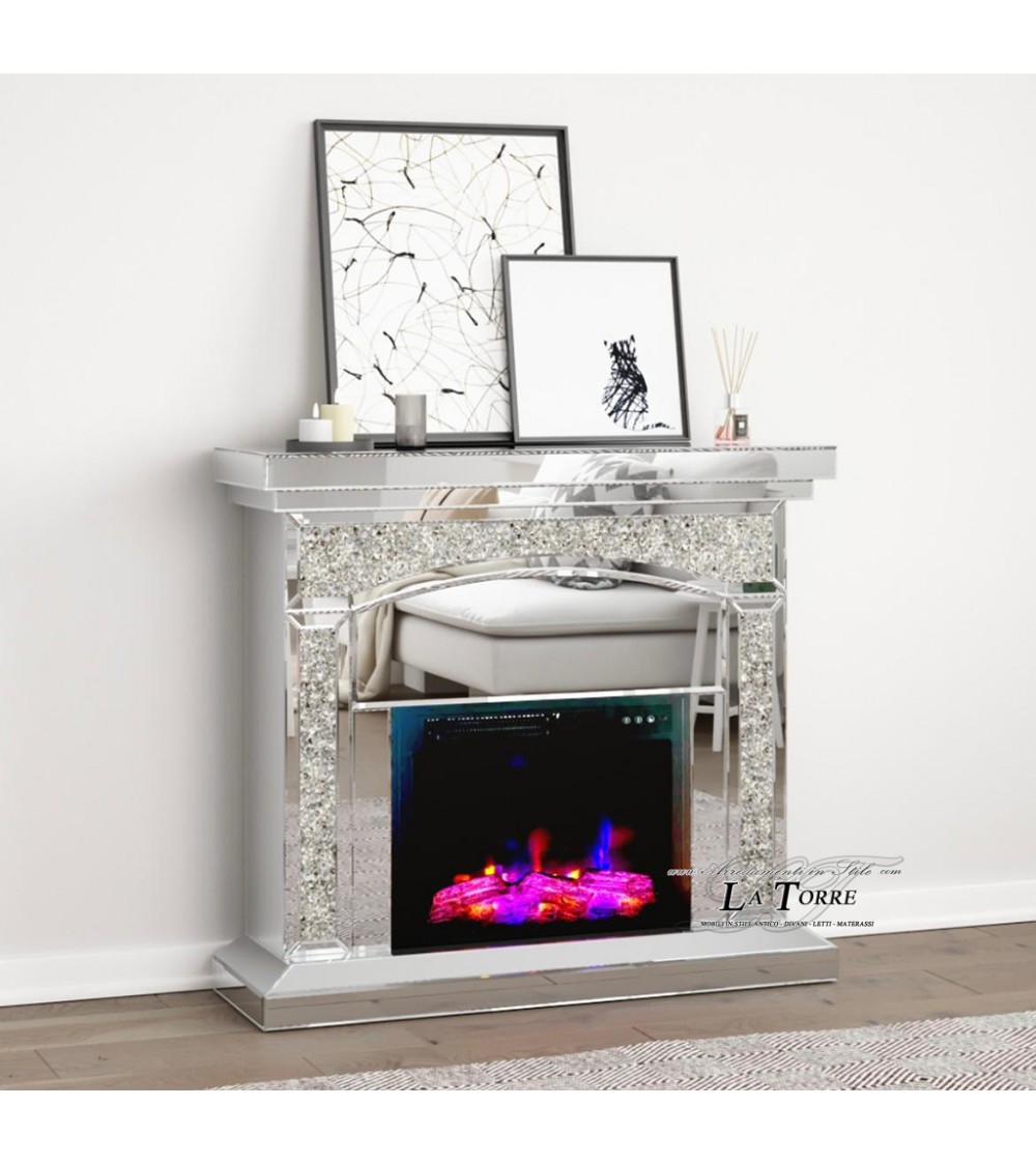 Camino Elettrico Moderno in Vetro Specchiato con Fiamma LED
