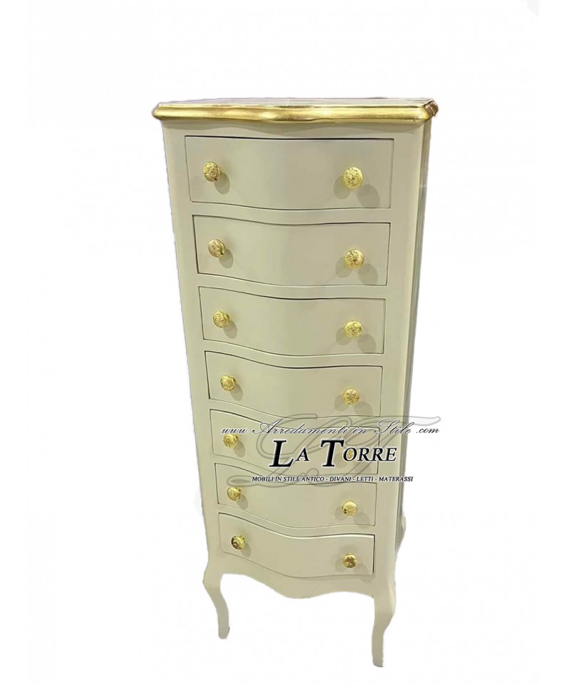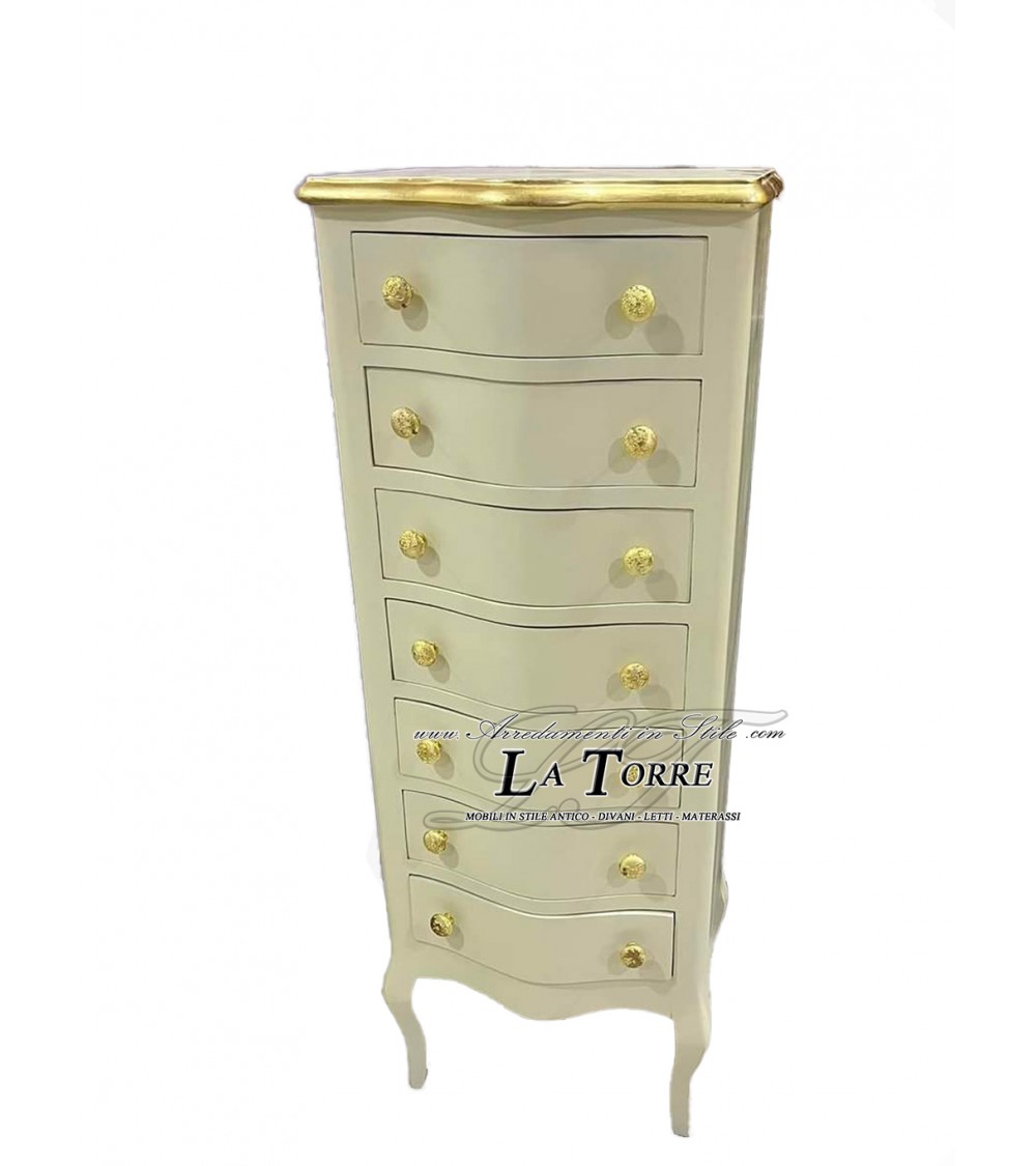 Cassettiera settimino Barocco moderno avorio e oro camera da letto LT3011