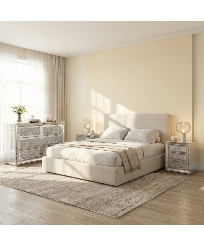 Aggiungi un tocco di eleganza e luce alla tua camera da letto con questo comodino specchiato dal design moderno.