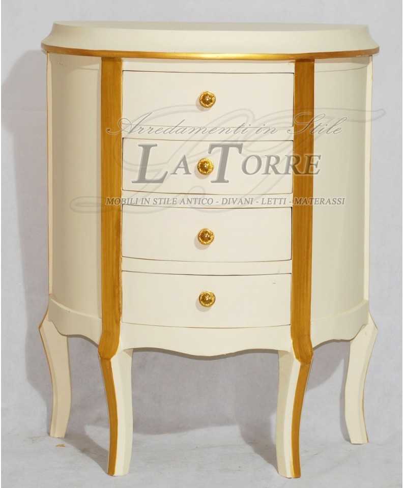 Comodino mezza luna portatelefono legno avorio oro servantina classico Ar9495