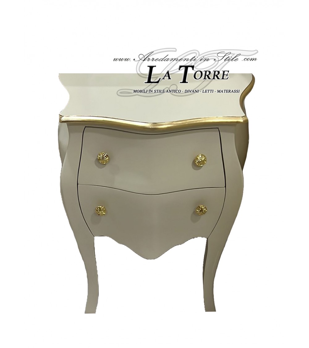 Comodino bombato classico 2 cassetti portatelefono legno Avorio e oro LT3006