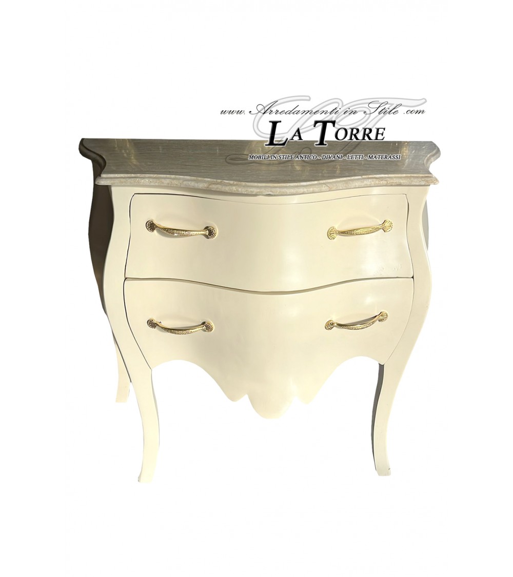 Comodino bombato classico con marmo 2 cassetti porta telefono legno avorio LT3053