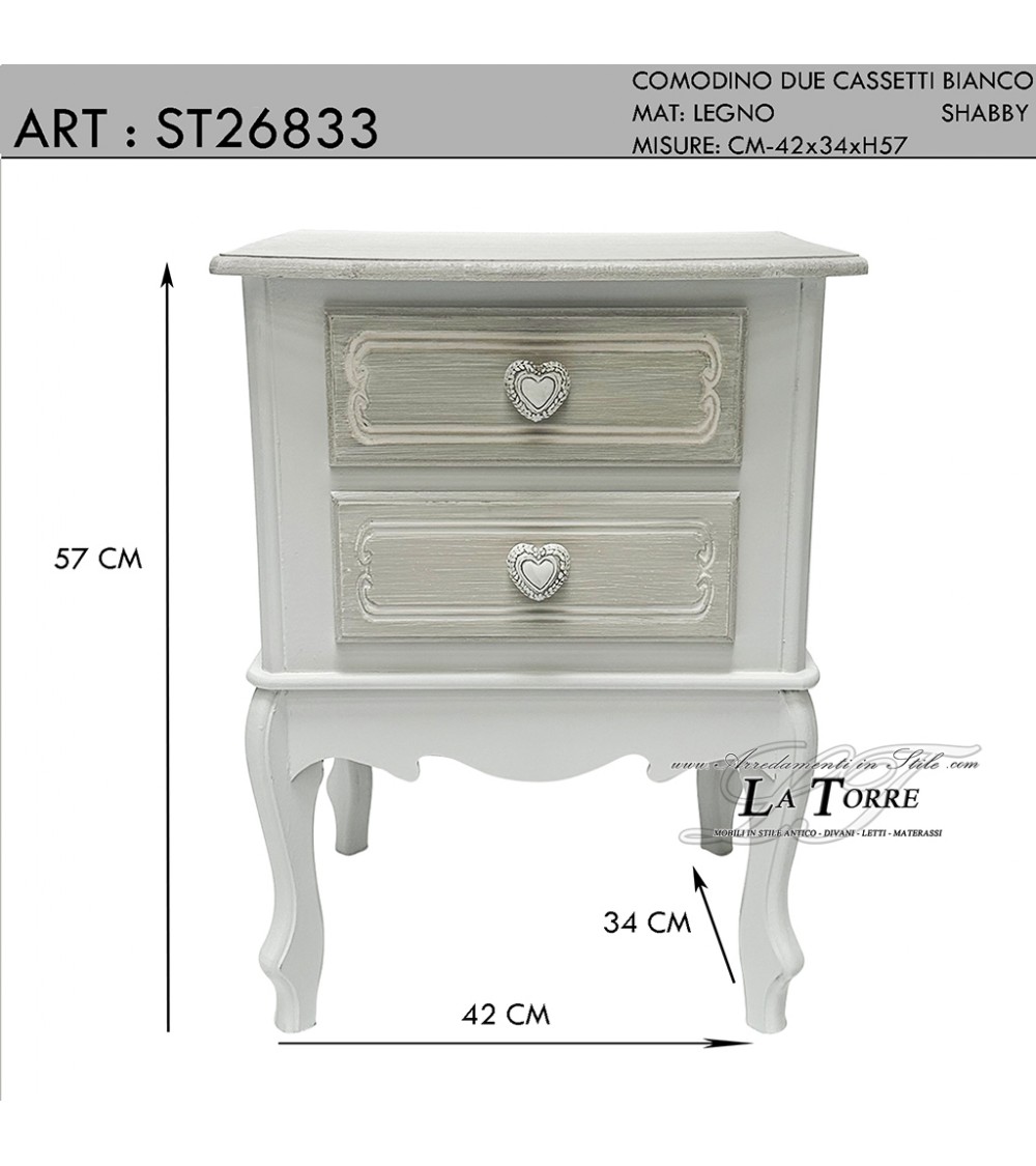 Comodino stile shabby classico 2 cassetti porta telefono legno bianco shabby chic ST26833