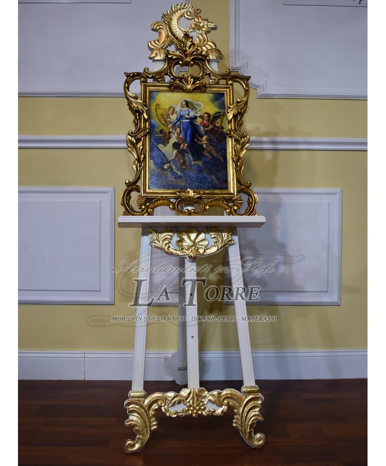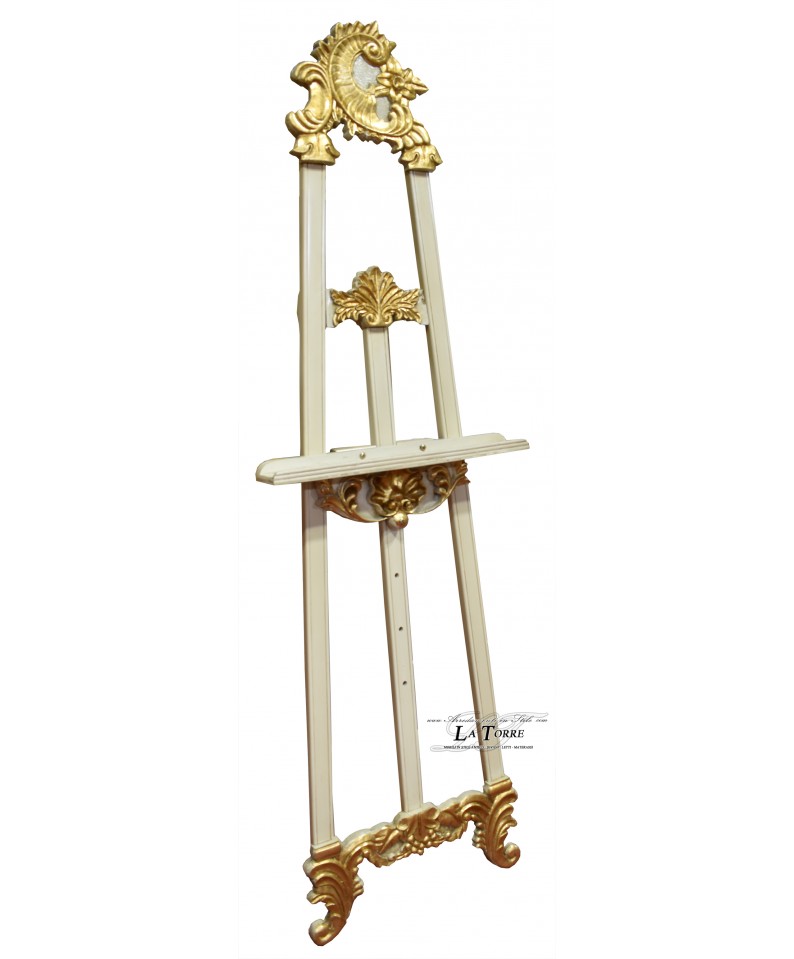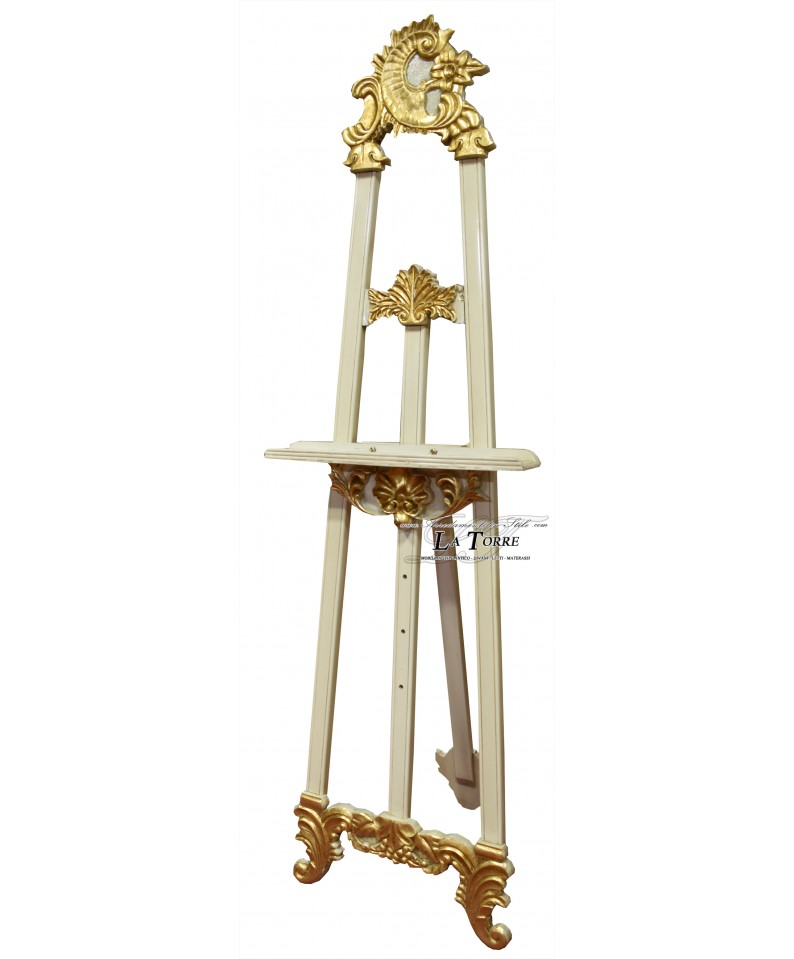 Cavalletto tre piedi barocco porta quadro dipinto cornice avorio e oro R56