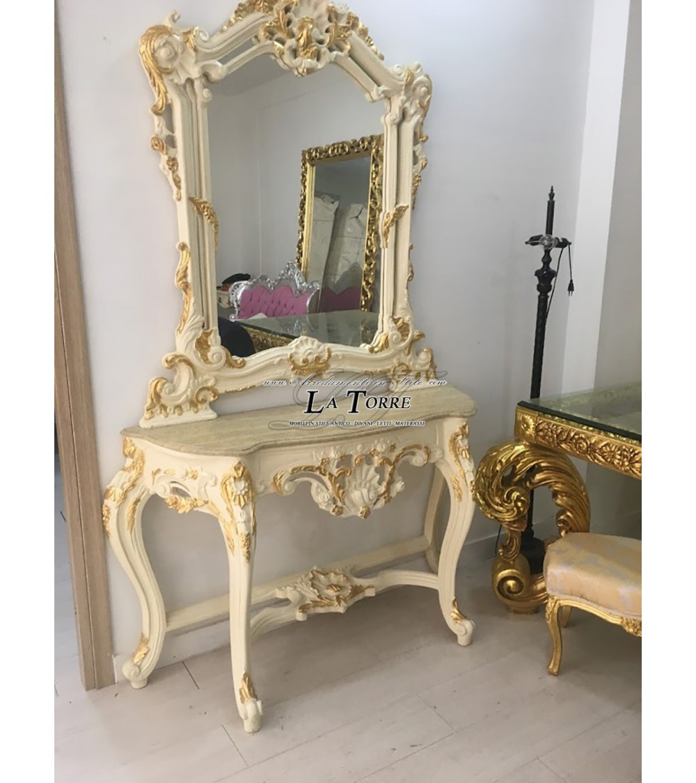 Consolle entratina con specchio Luigi XV Barocco avorio foglia Oro marmo AL2448